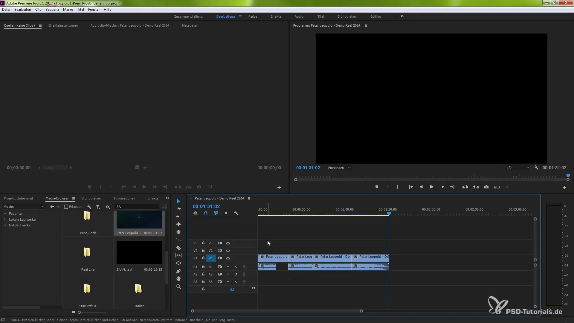 Wie importiere ich Clips in bestimmte Spuren?Wenn du Clips importierst, werden sie entsprechend den aktivierten Quellen im Quelle-Patching platziert.