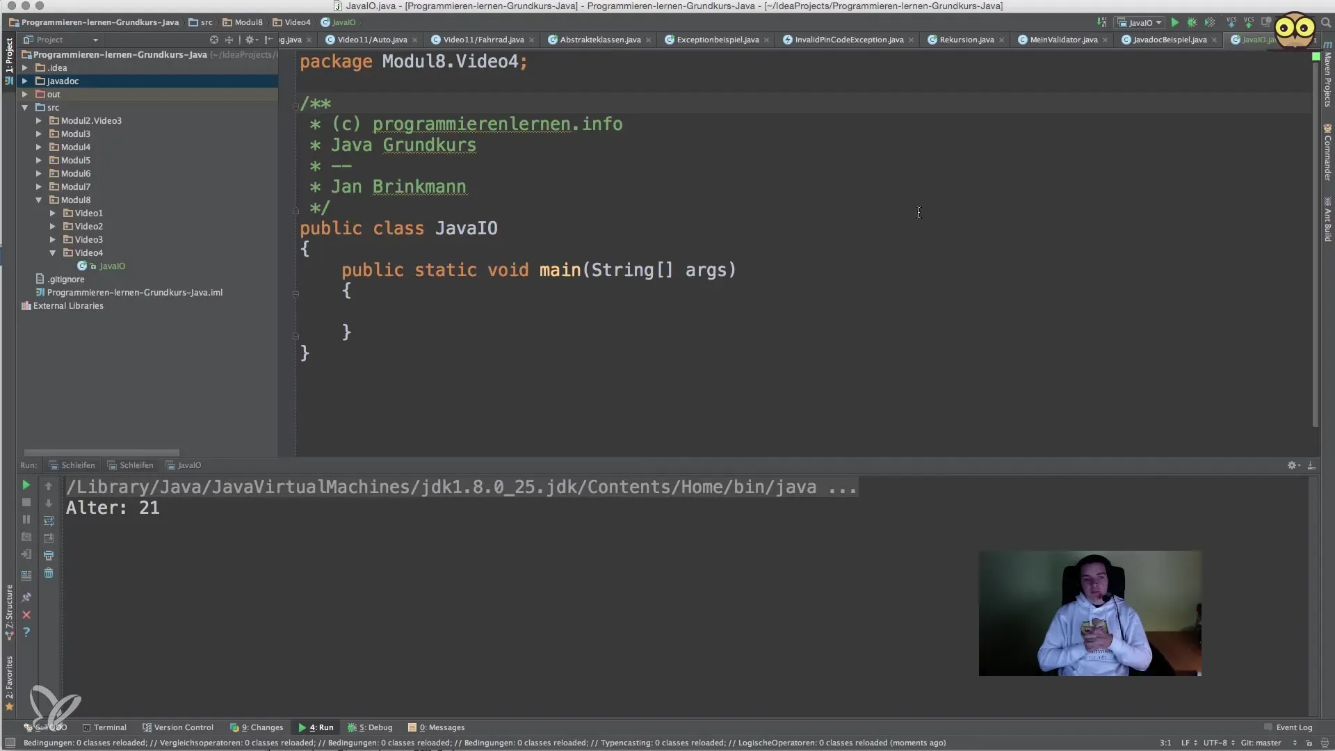 Um Eingaben vom Benutzer zu erhalten, nutzen wir System.in. Dabei empfiehlt es sich, die Scanner-Klasse aus dem Package java.util zu verwenden. Scanner vereinfacht das Einlesen von Daten, da es unterschiedliche Datentypen automatisch erkennt und die Eingabe als String zurückgibt.