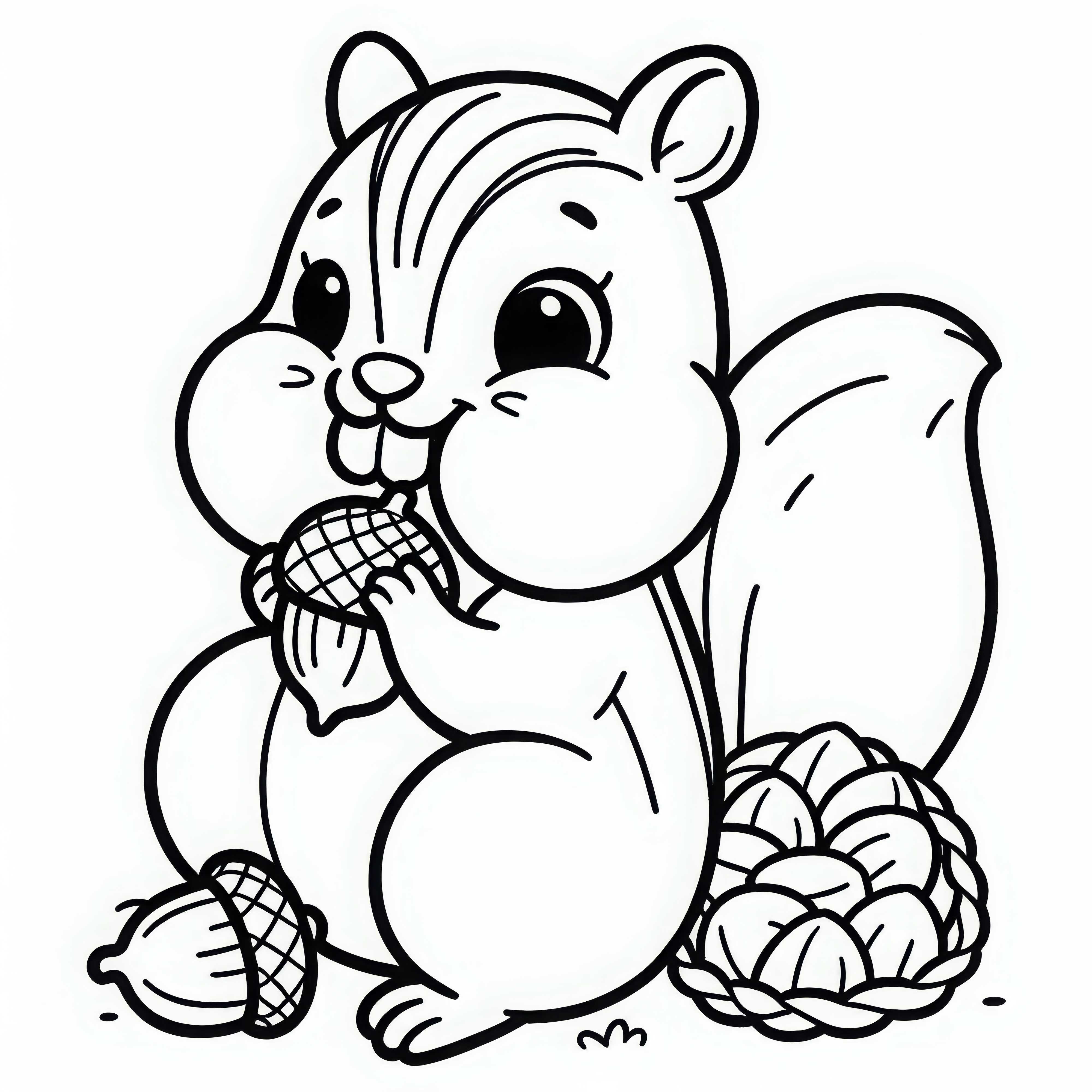 На този шаблон за оцветяване виждаш снежно беличко, което събира жълъди. Изтегли изображението сега!