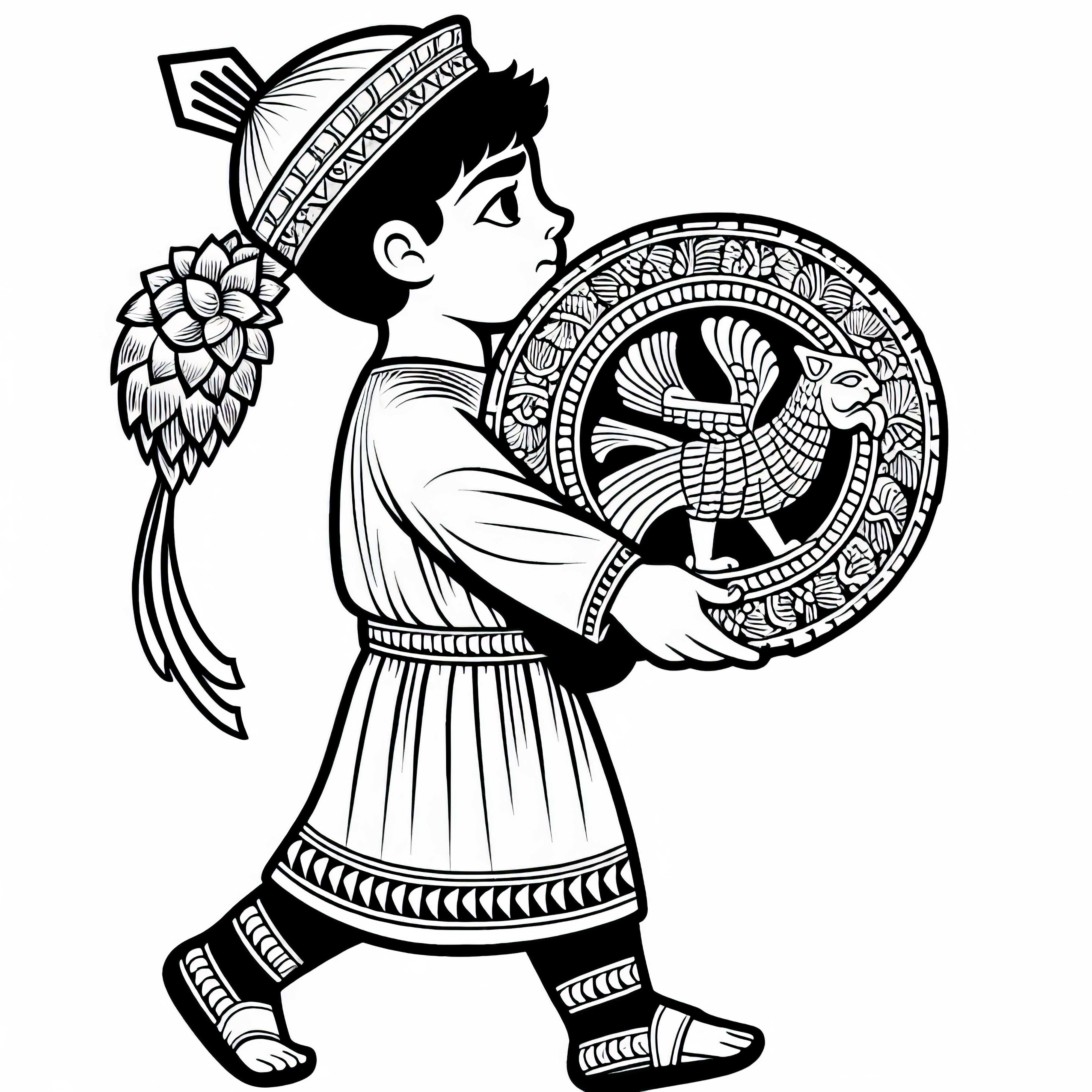 Момче пише със дървено пръчица знаци на глинена плоча - безплатен шаблон за рисуване Хетити
