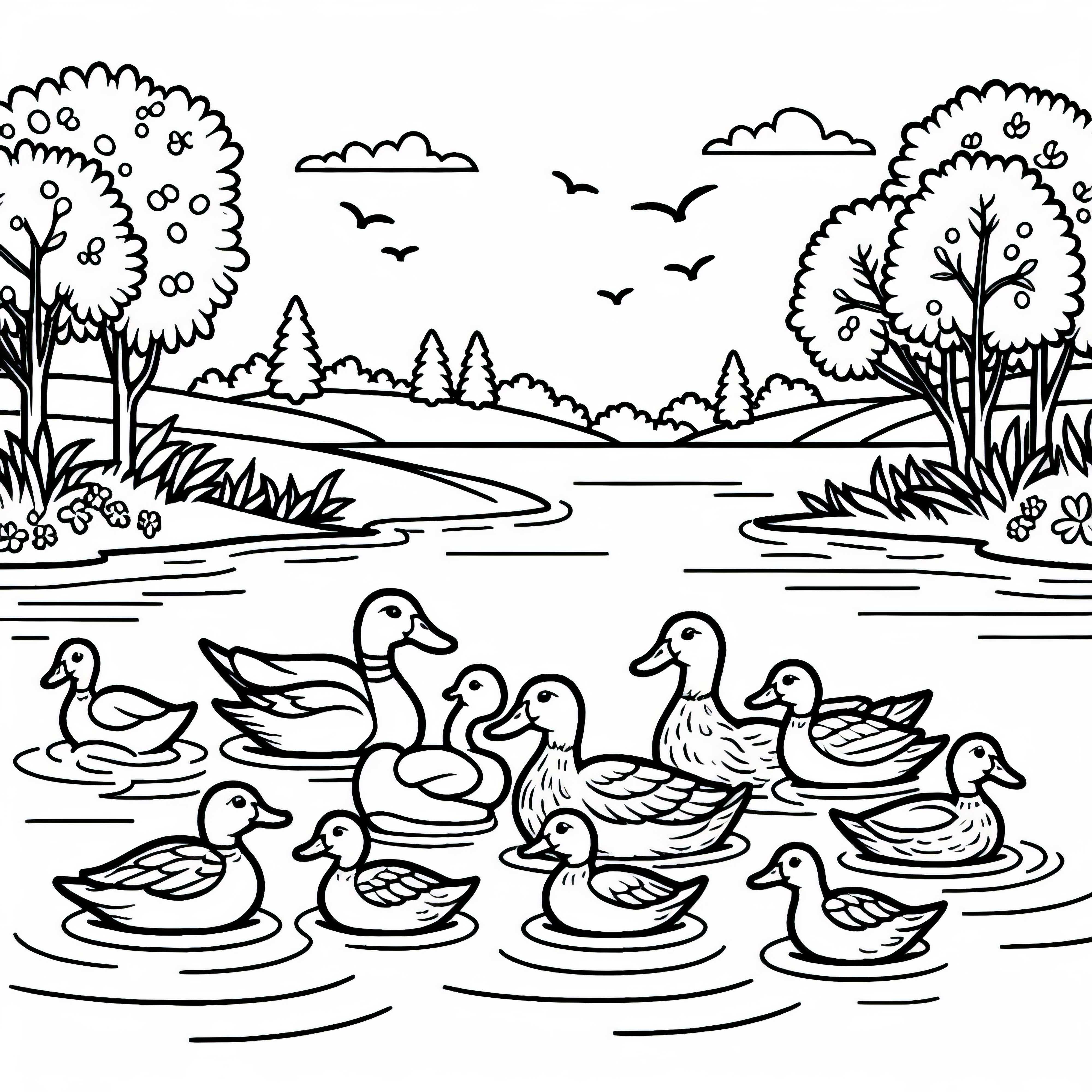 Деца играят на брега на езерото – безплатна картинка за оцветяване