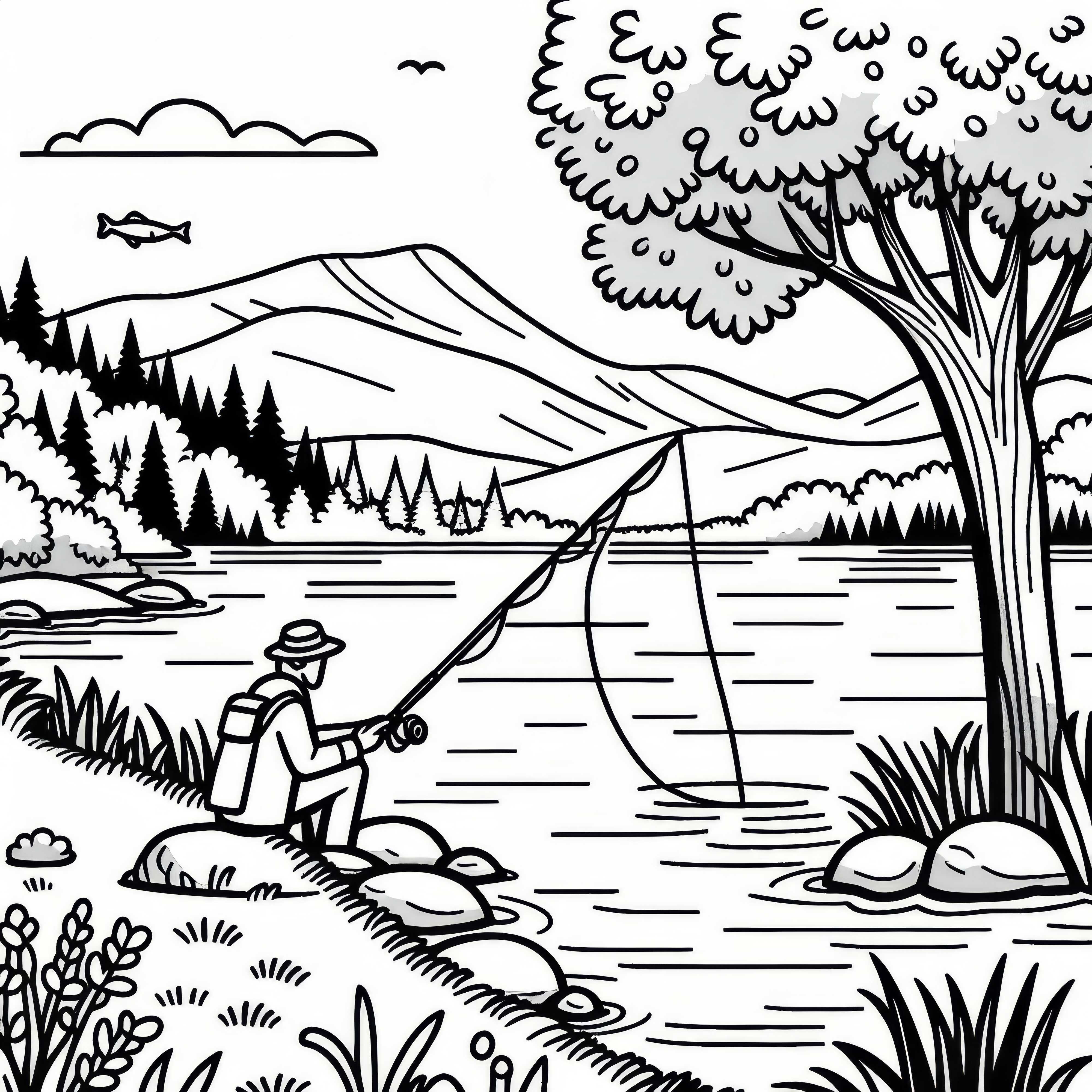 Росен расте гъсто на брега на езеро – безплатна оцветяваща страница