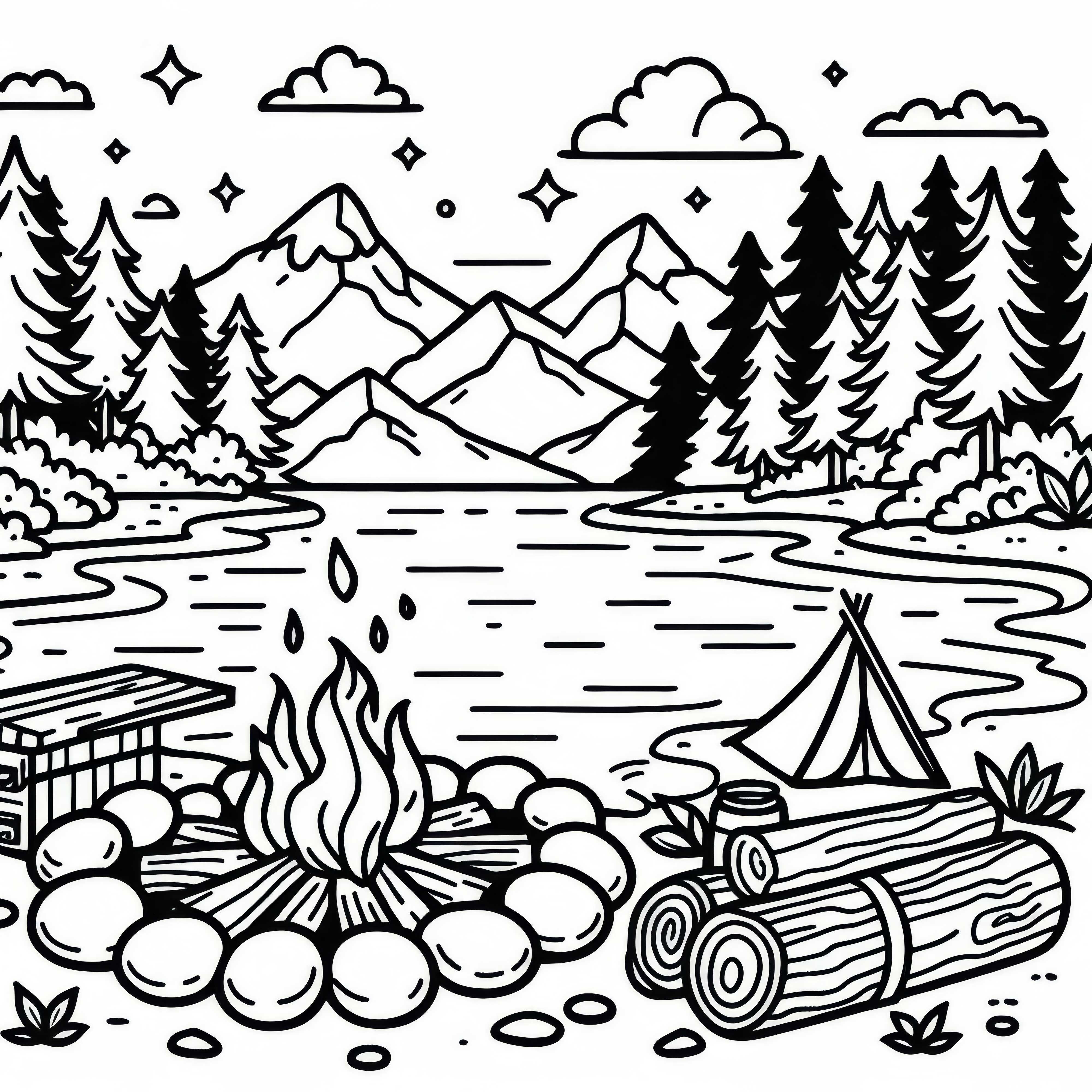 Росен расте гъсто на брега на езеро – безплатна оцветяваща страница