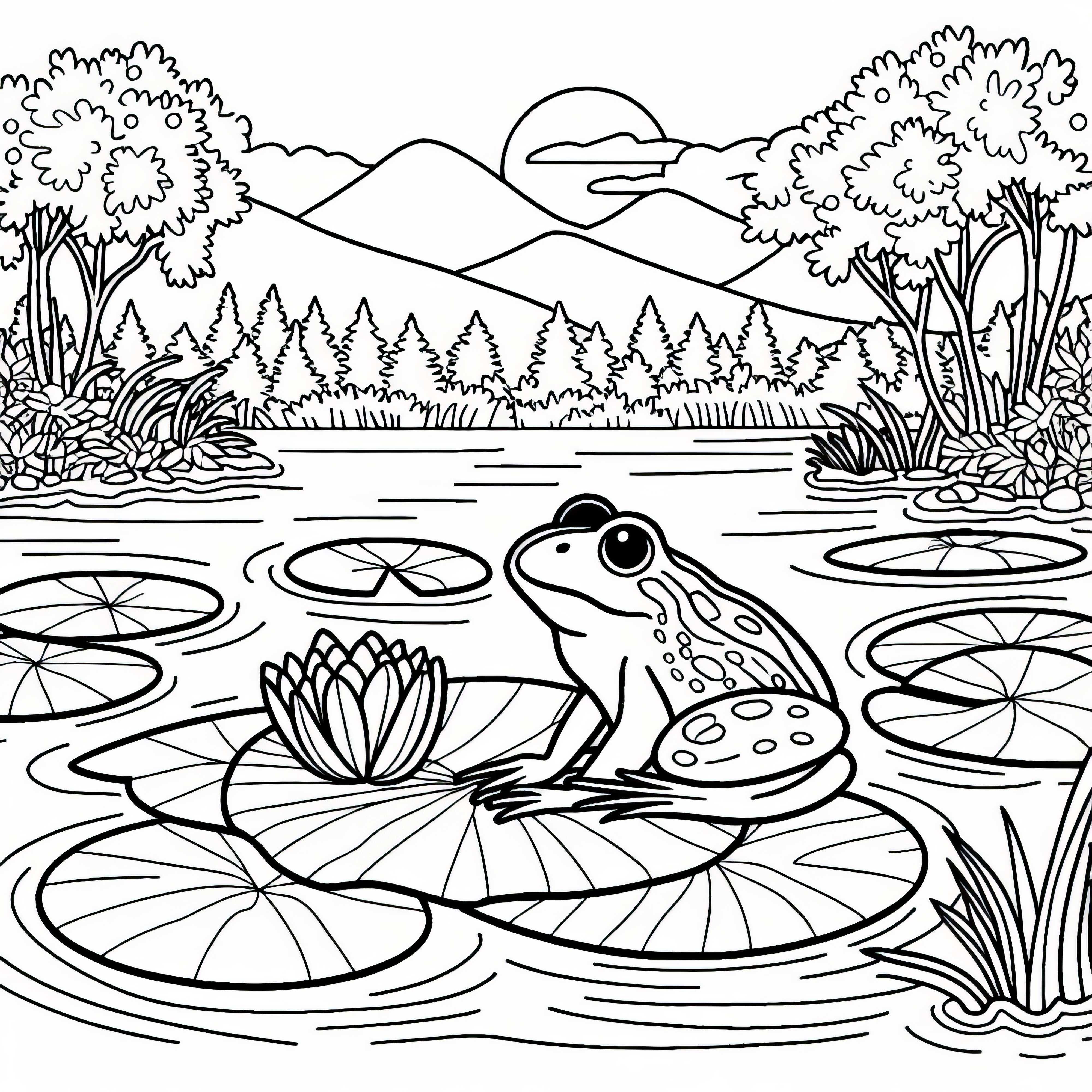 Деца играят на брега на езерото – безплатна картинка за оцветяване