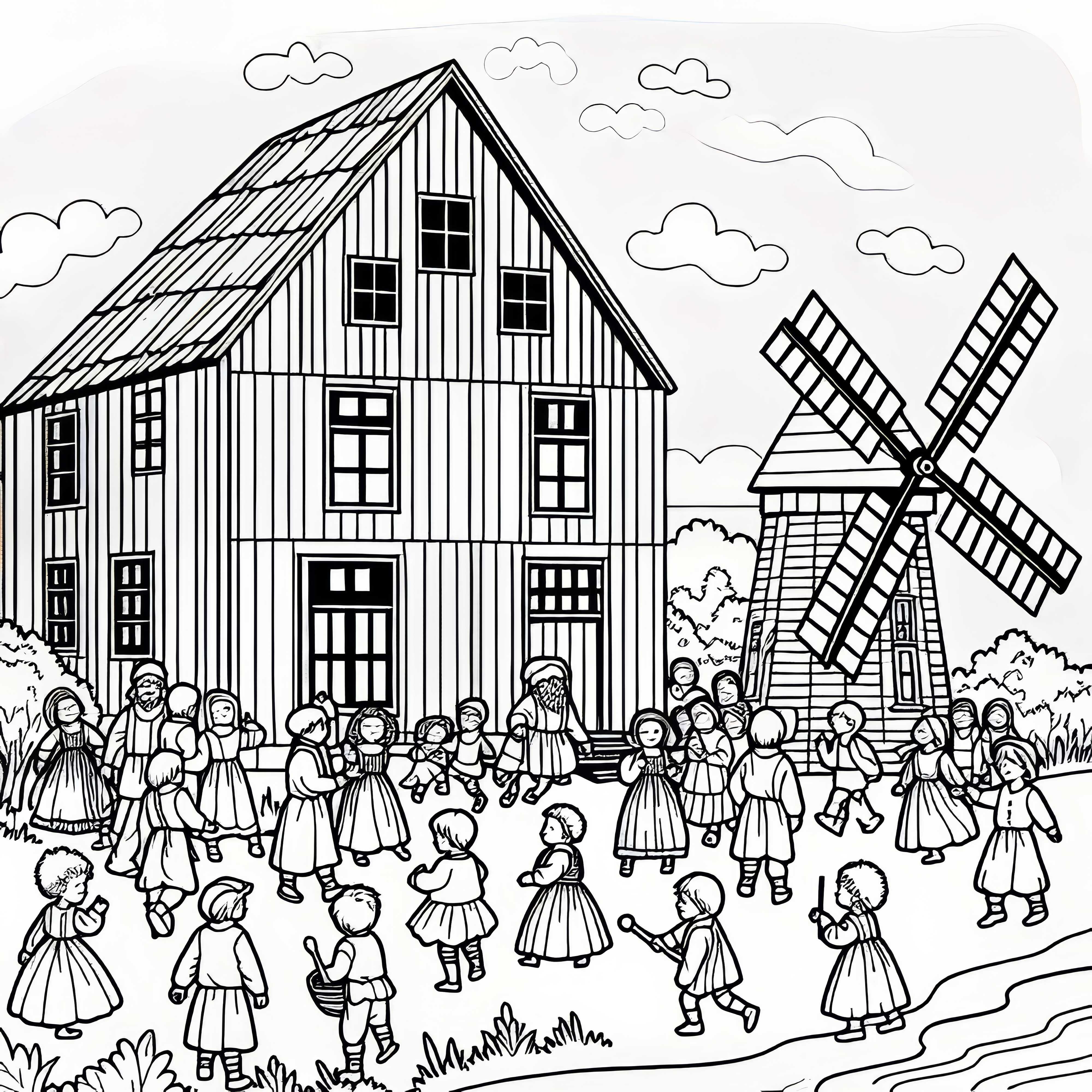 Мелницата - Картинки за оцветяване: Безплатно оцветяване на пейзажни мотиви – Допълнително съдържание