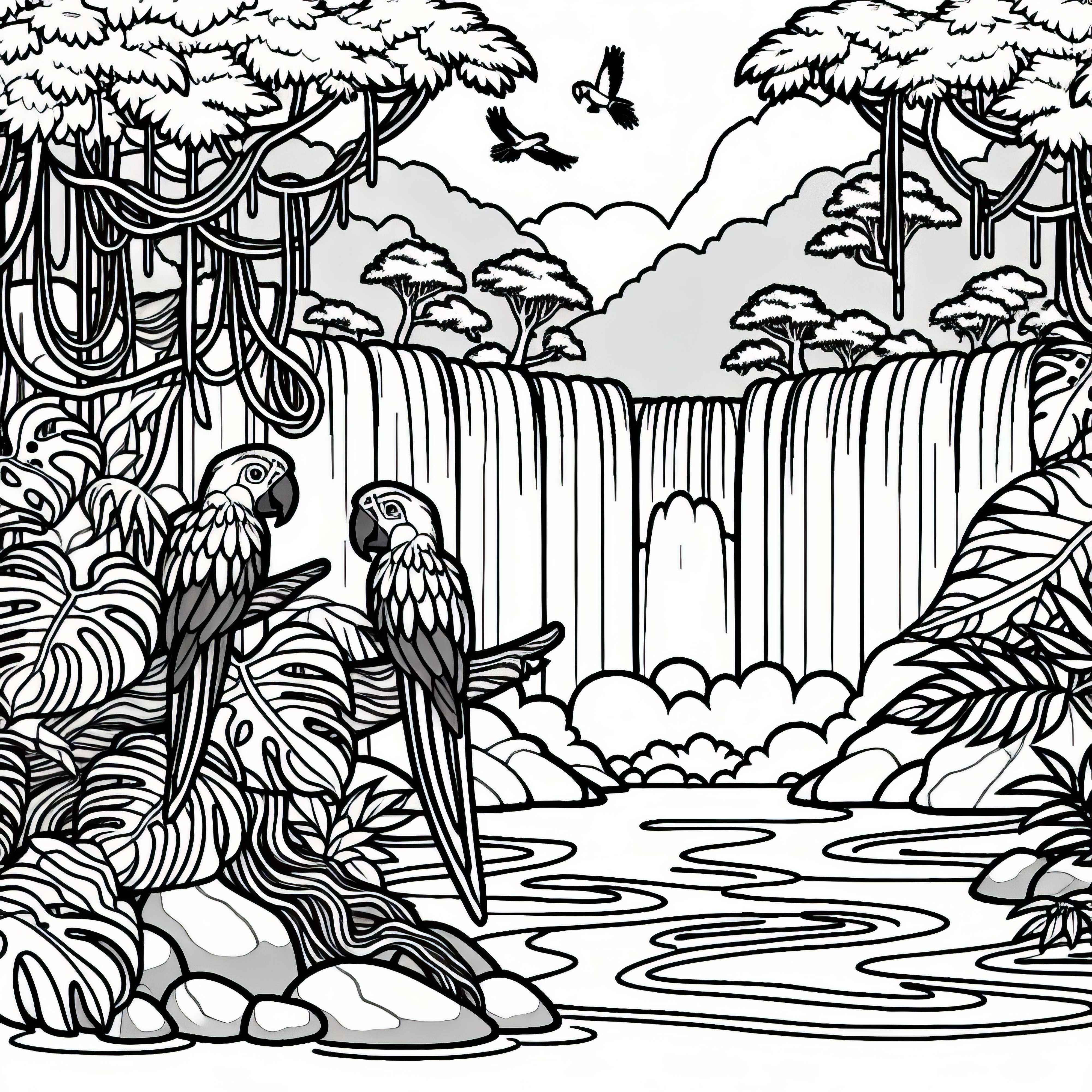 Виж в подножието на водопад – безплатен шаблон за оцветяване