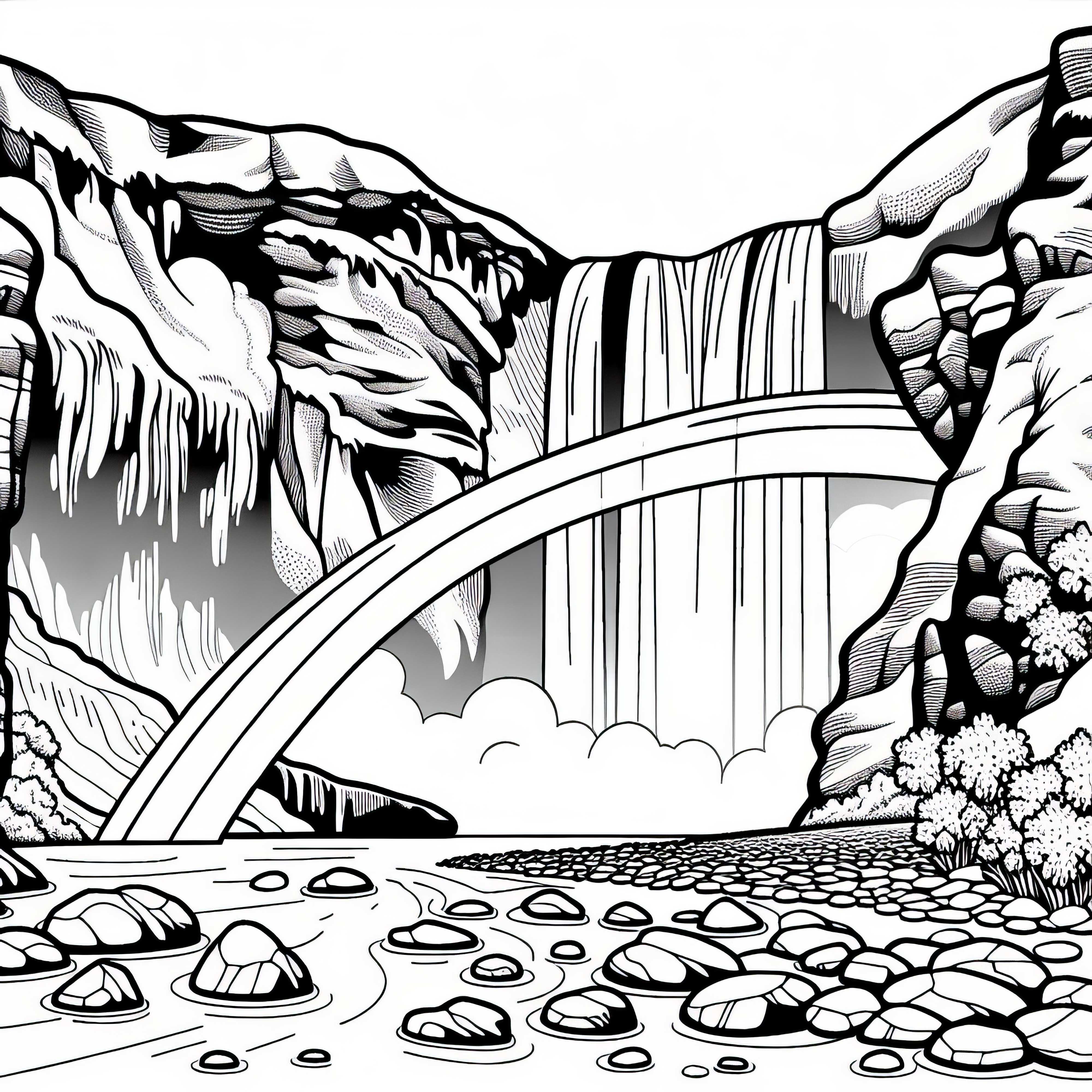 Мост над водопад оцветяваща страница безплатно