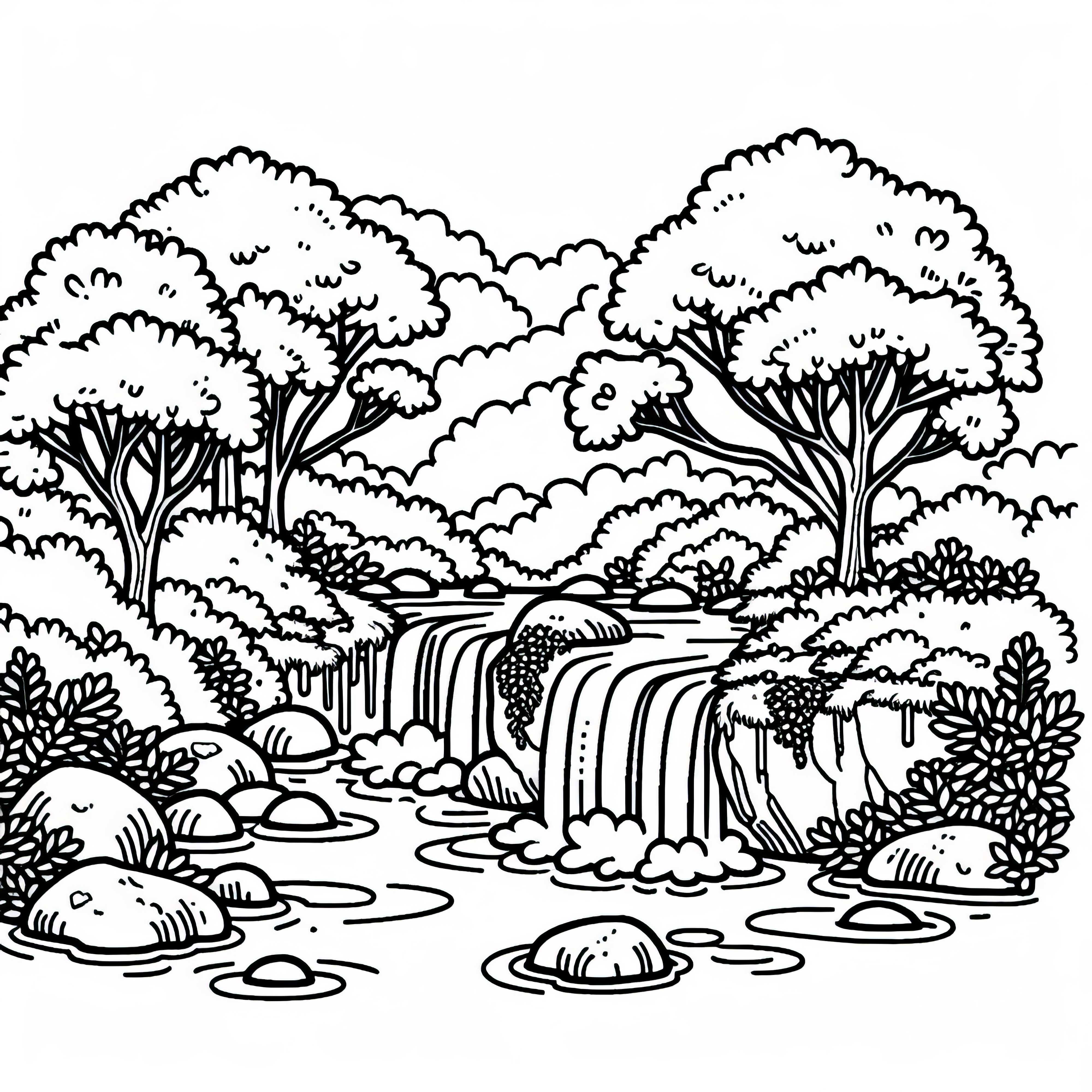 Водопади с няколко стъпала – безплатна рисунка за оцветяване