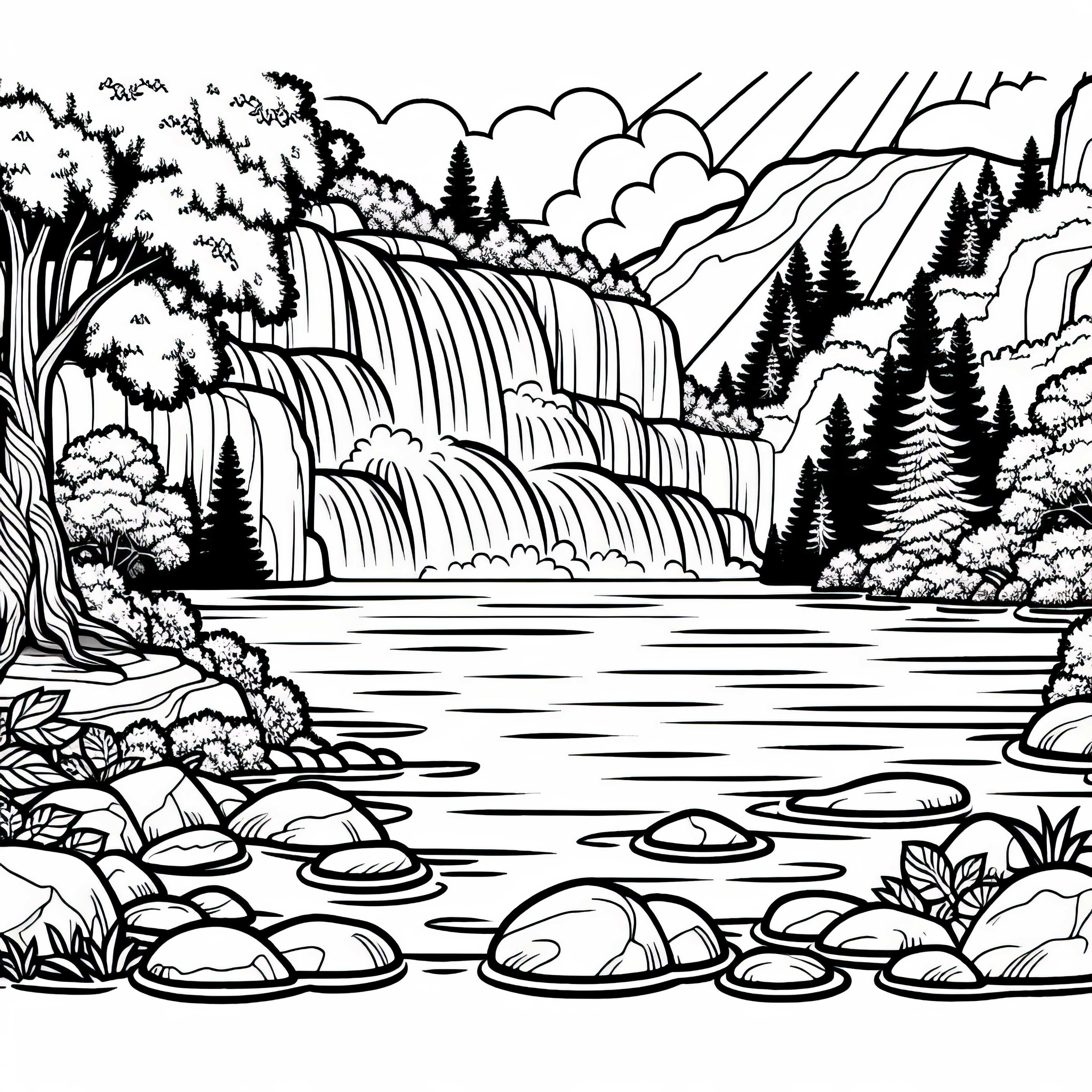 Водопади с няколко стъпала – безплатна рисунка за оцветяване