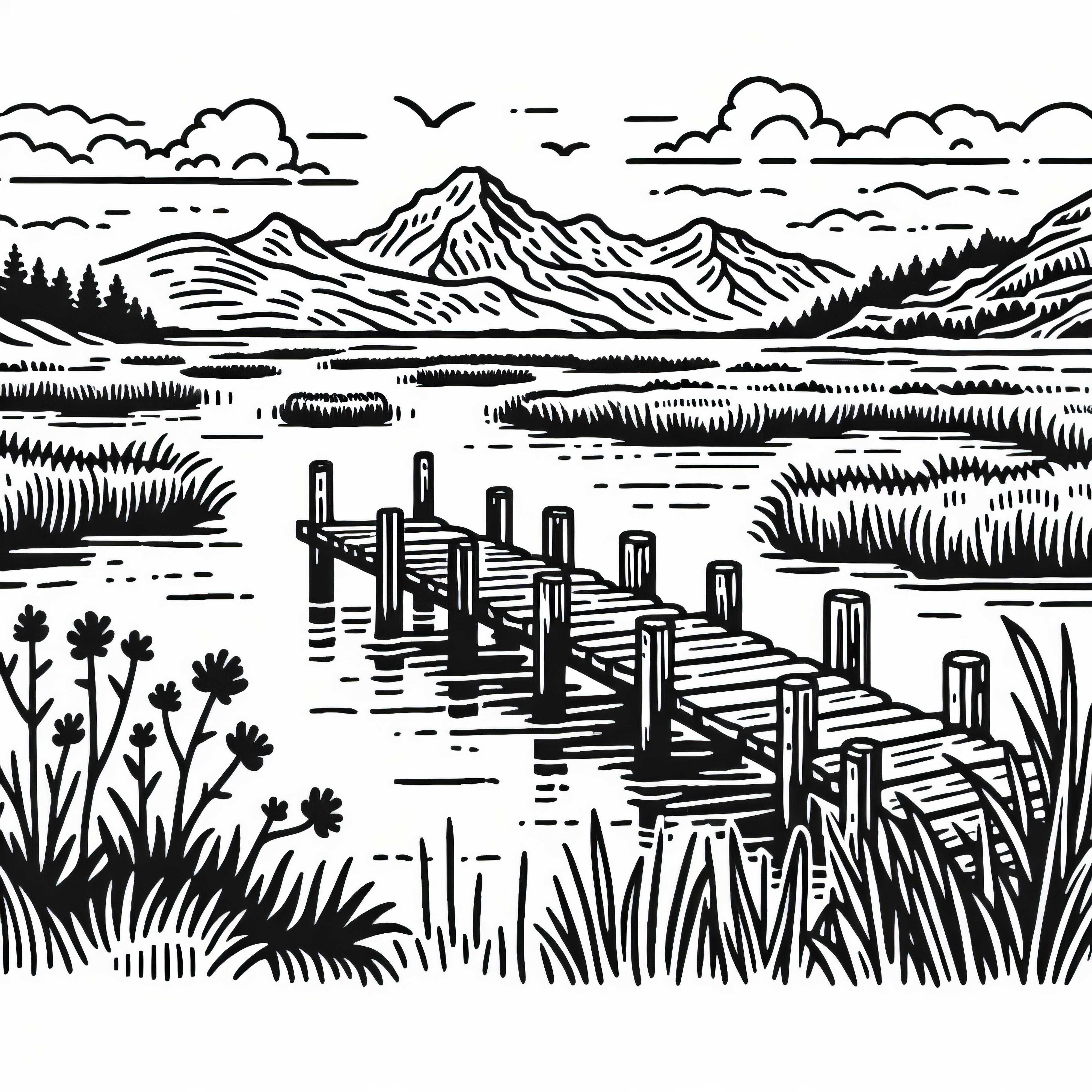 Малък дървен мост в блатиста местност – Безплатна разцветка