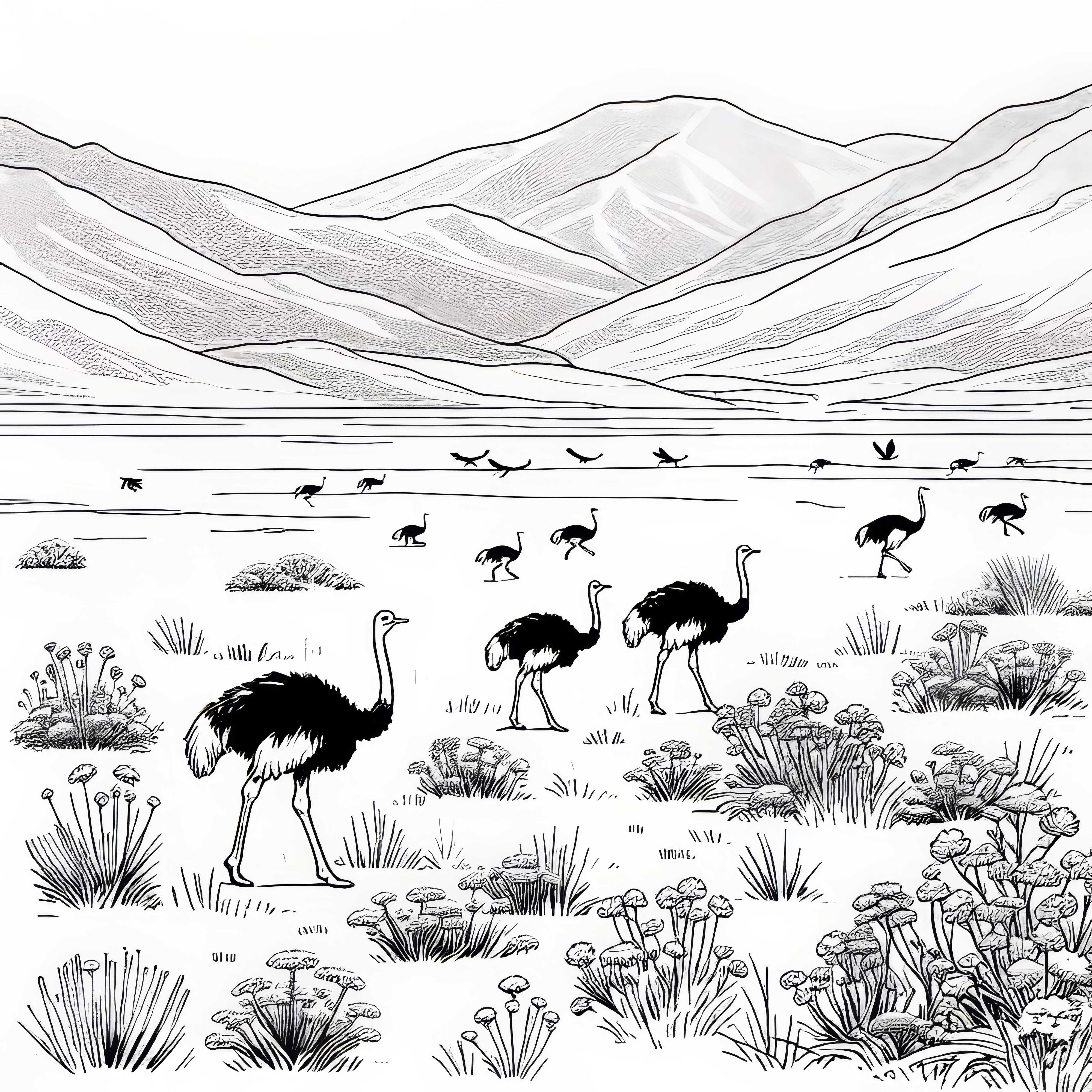 Пустинна степ с отделни храсти - безплатен шаблон за оцветяване