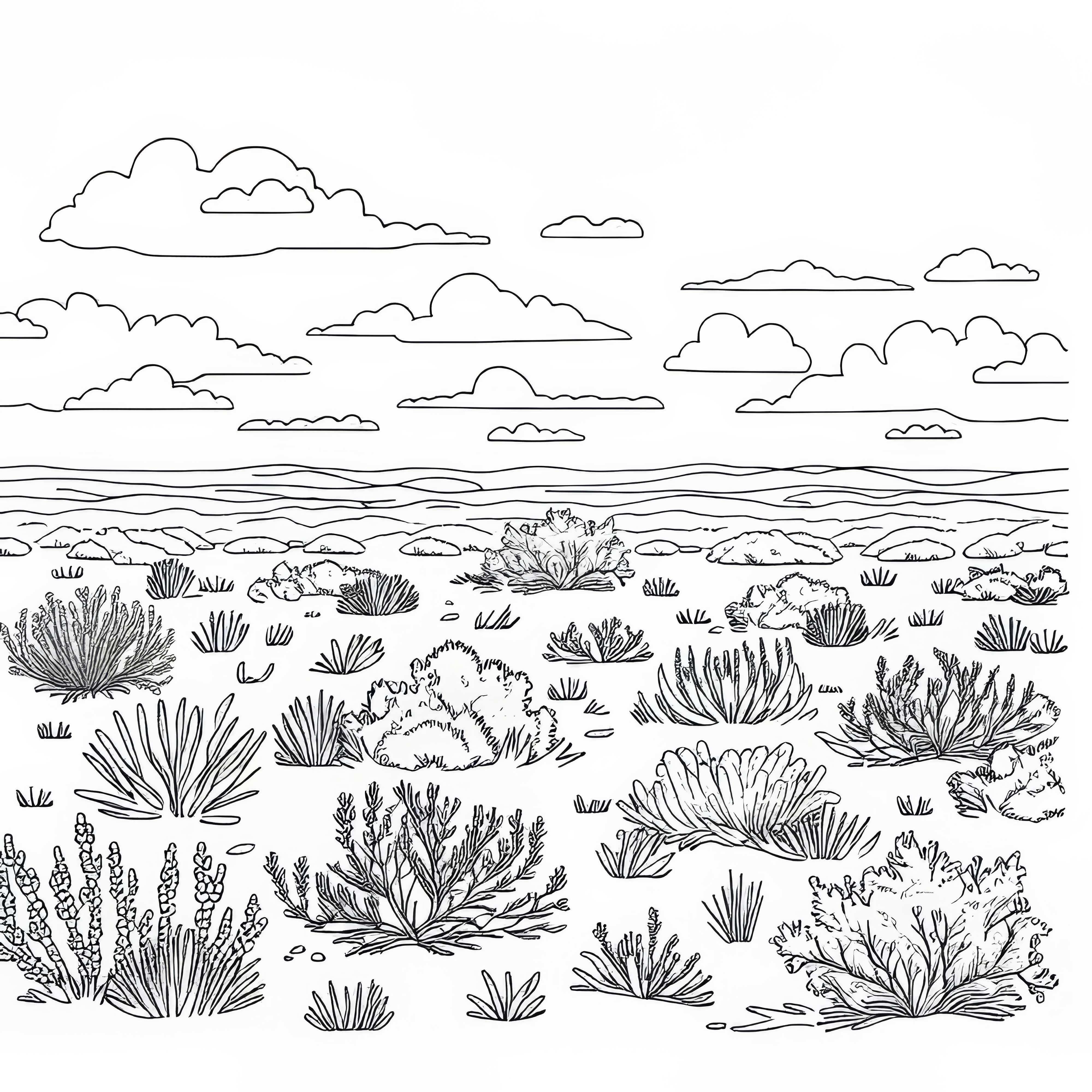 Вятърът духа над тревиста степ – Безплатно изтегляне на оцветяваща картина