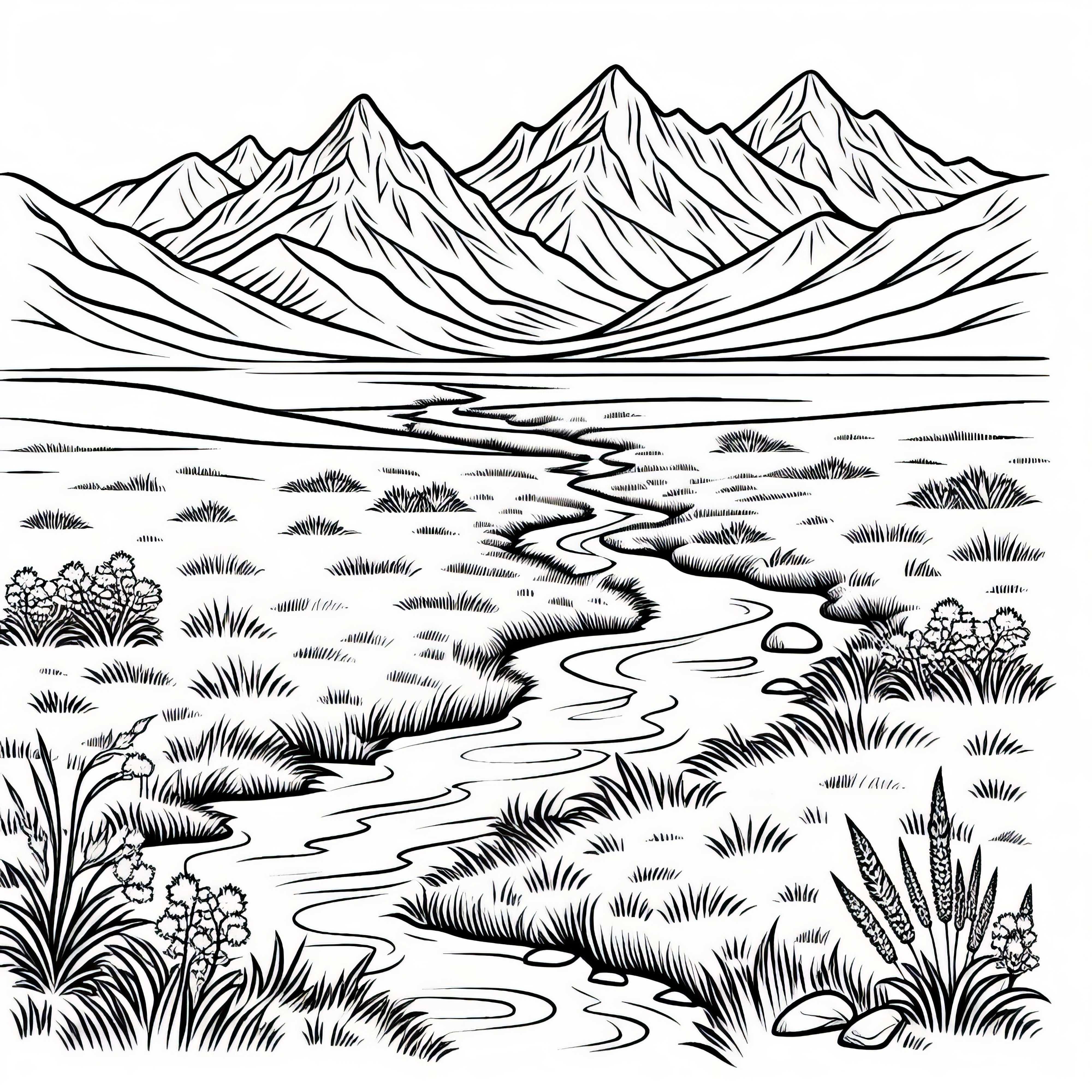 Вятърът духа над тревиста степ – Безплатно изтегляне на оцветяваща картина