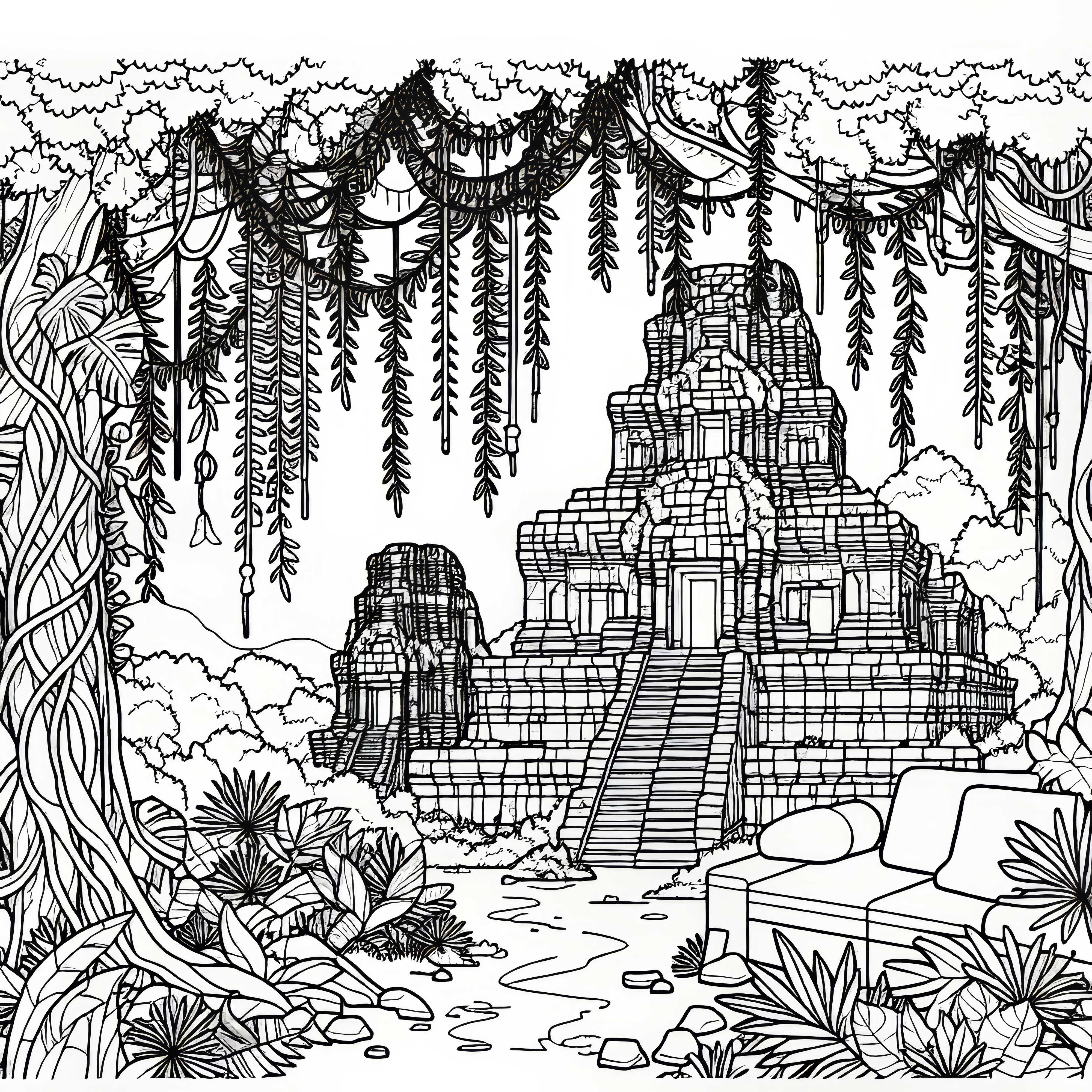 Срутени колони на храмове с вплетени лози – Оцветяваща страница на Ruins Безплатно