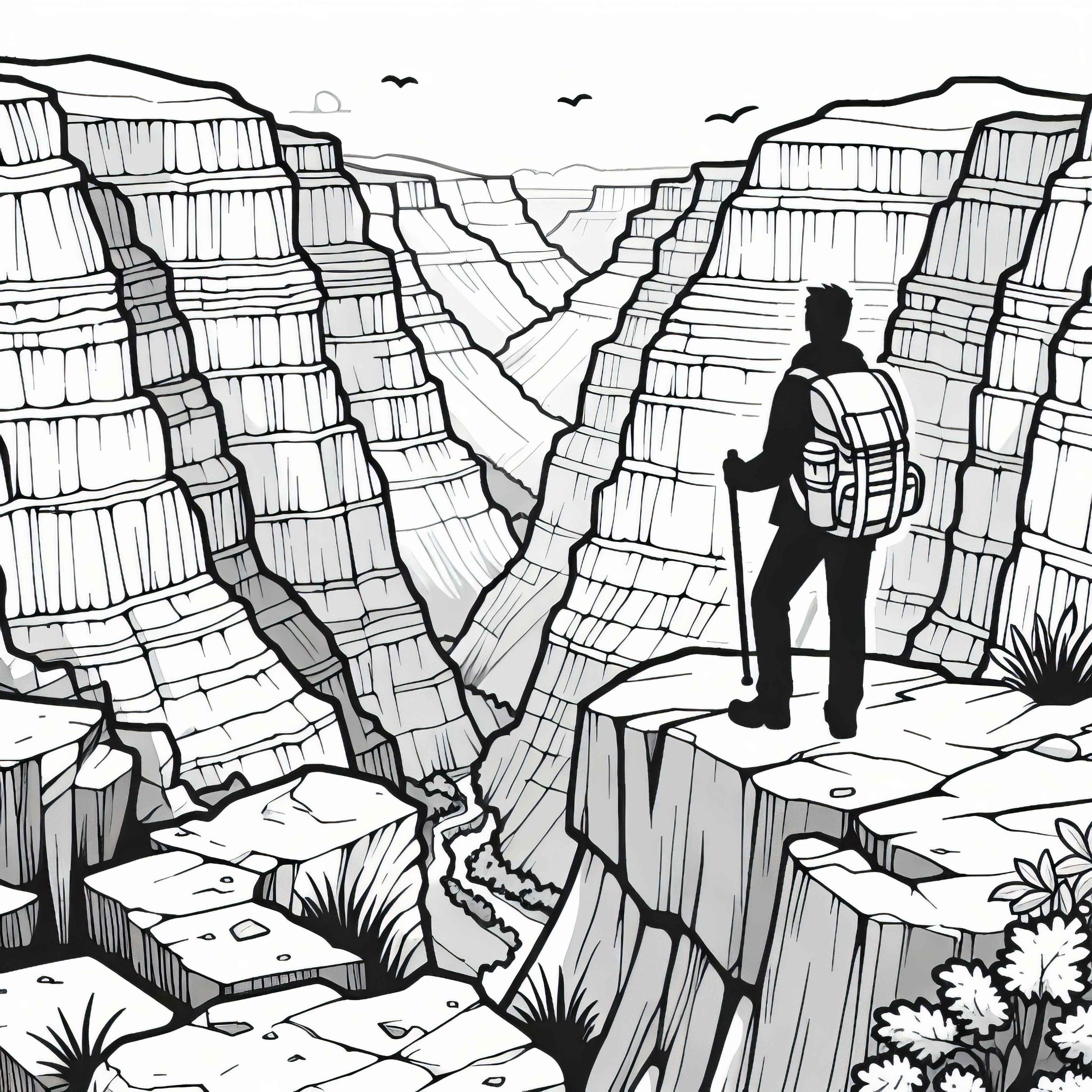 Катерач на стръмен скалист склон на каньон – безплатна рисунка за оцветяване