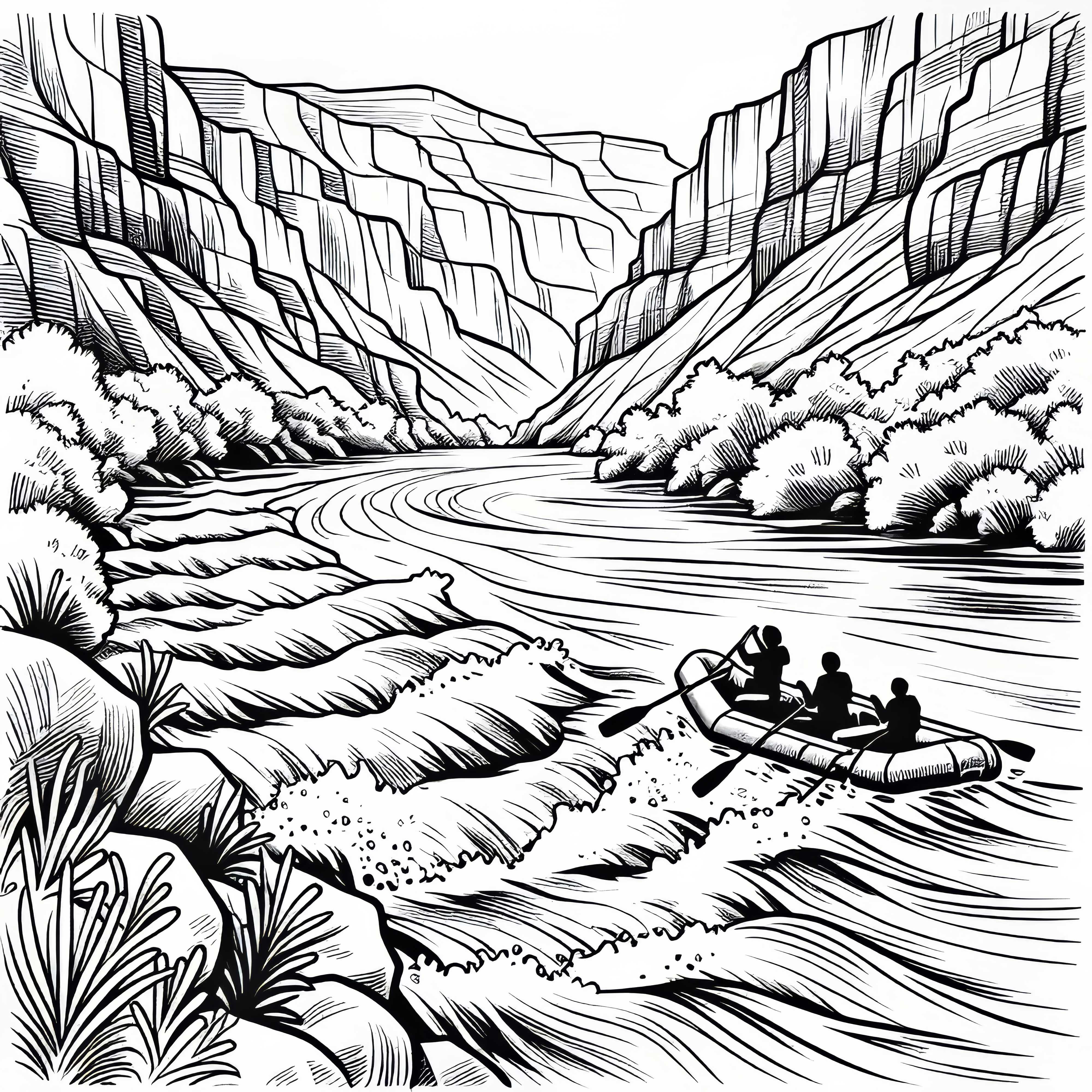 Дълбока изсечена долина с река – Безплатна оцветяваща страница