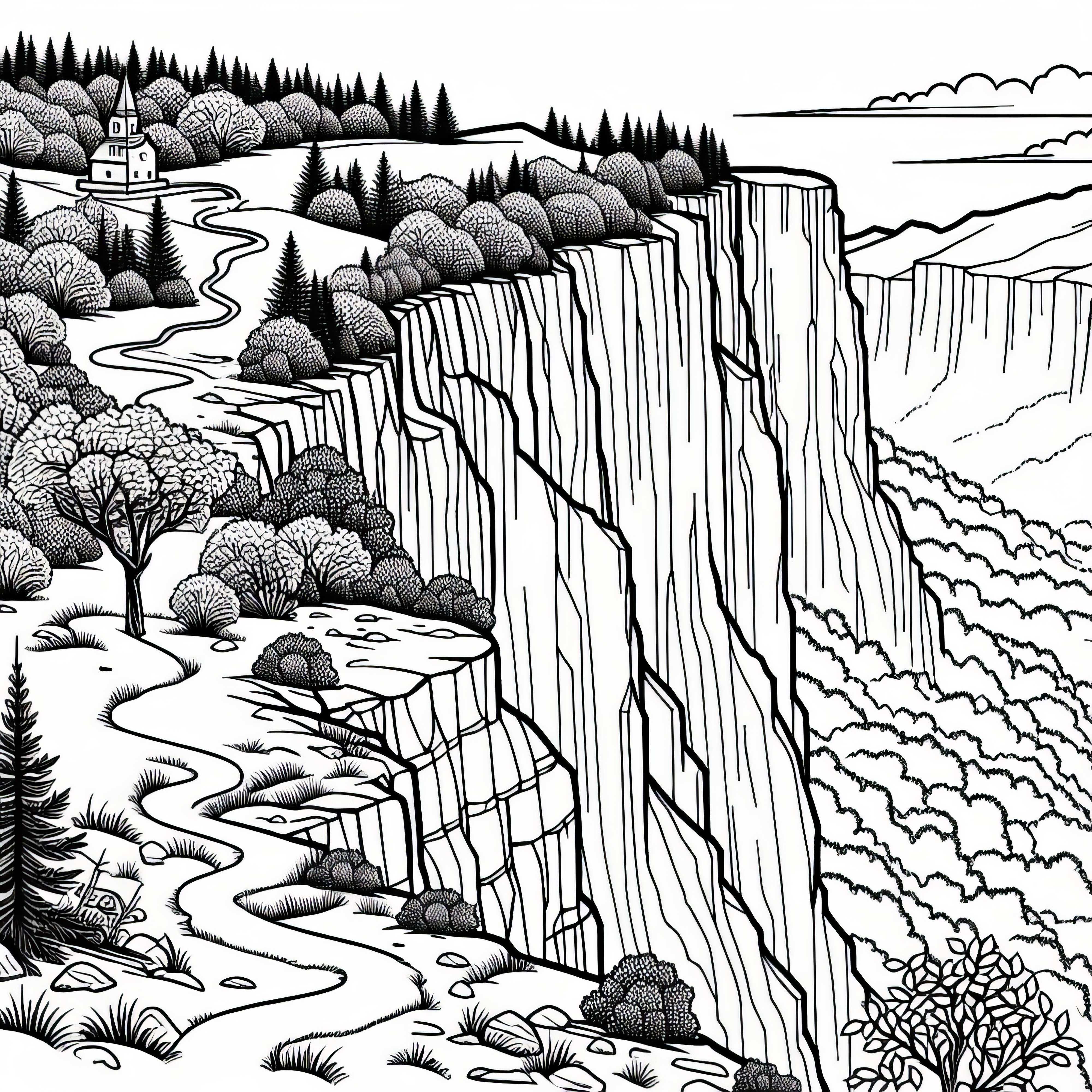 Залез над стръмен скалист бряг - безплатен шаблон за оцветяване