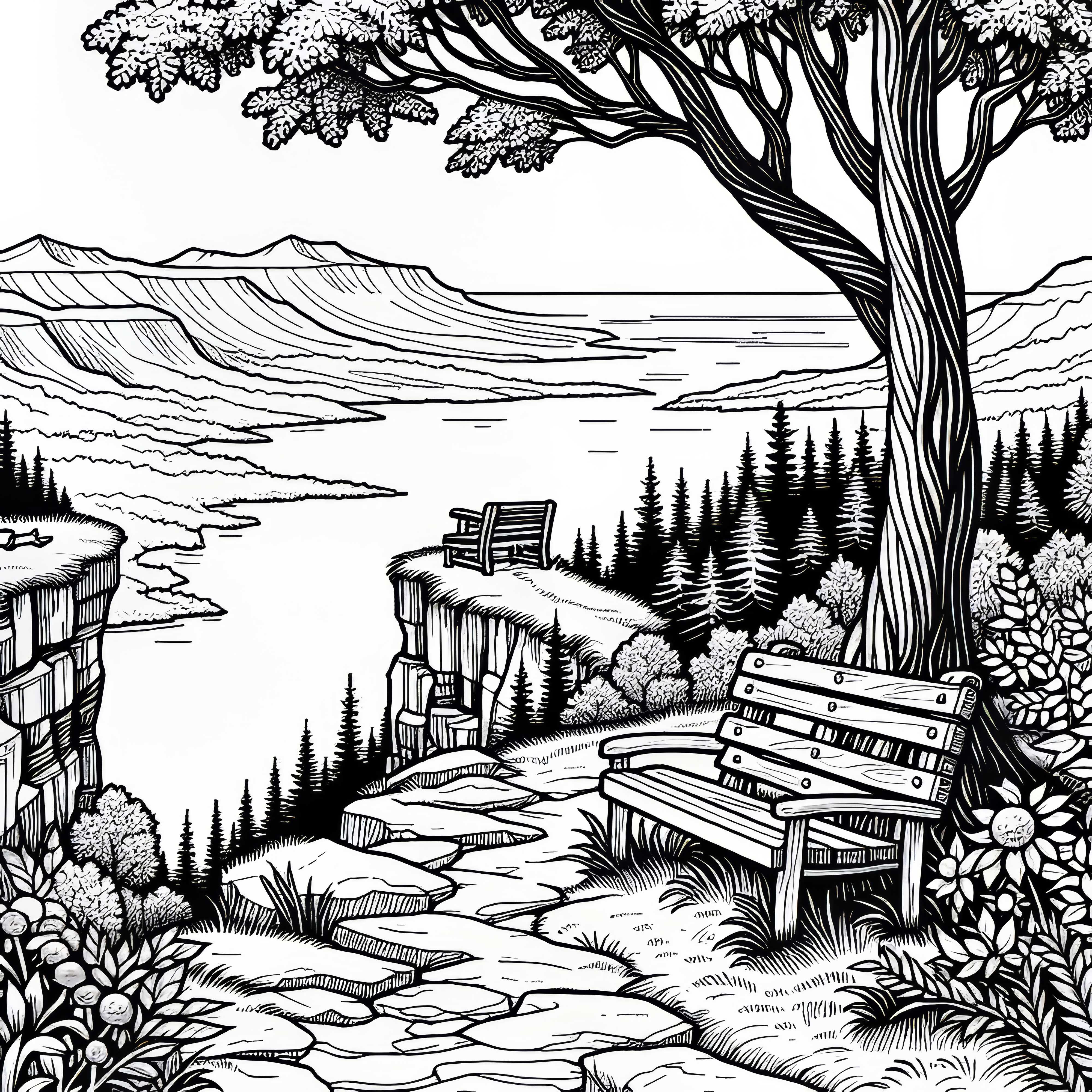 Пътека за пешеходци, която минава покрай ръба на скалите – Безплатна оцветяваща страница