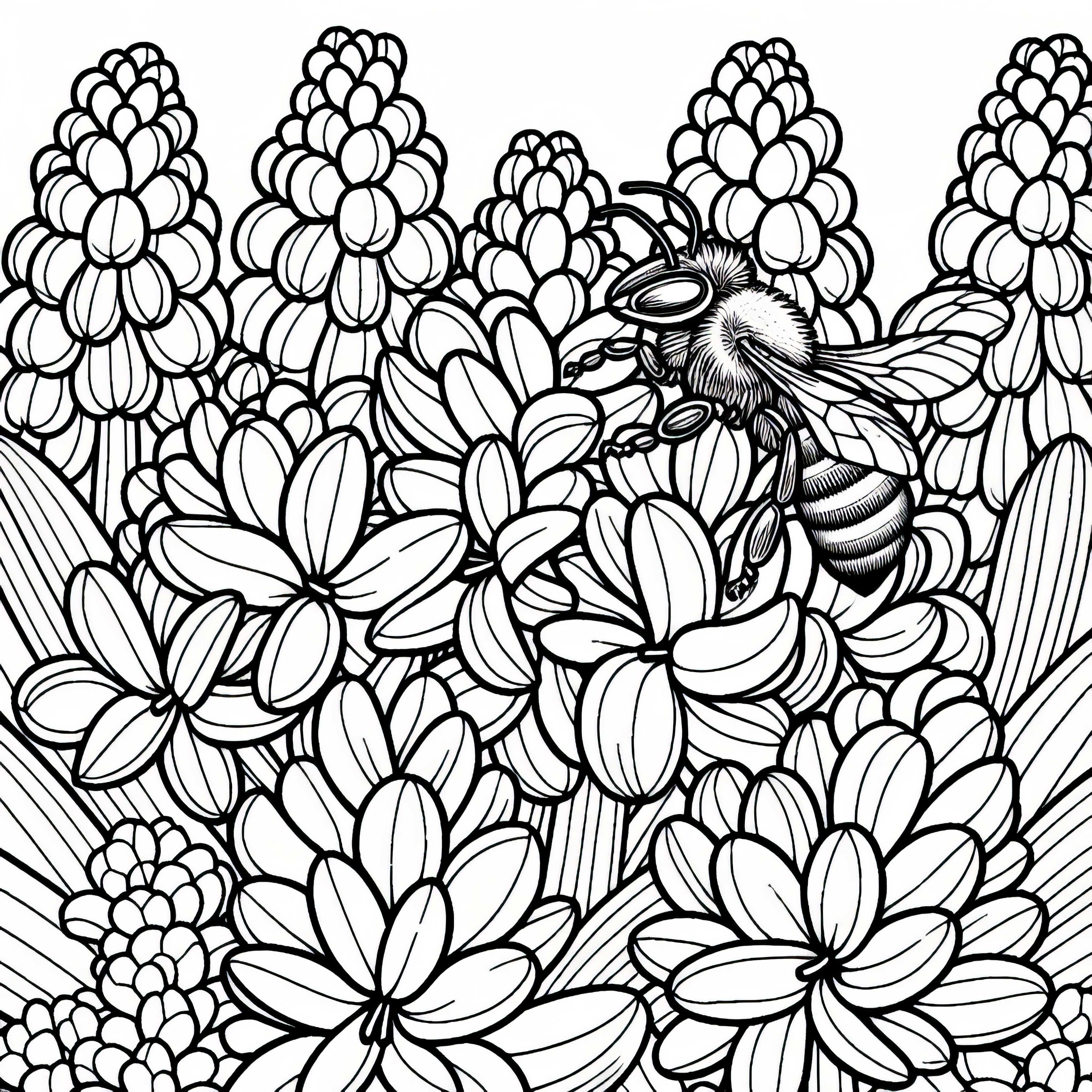 Рисунка за оцветяване: Пчела между хиацинти – Детайли за изображението