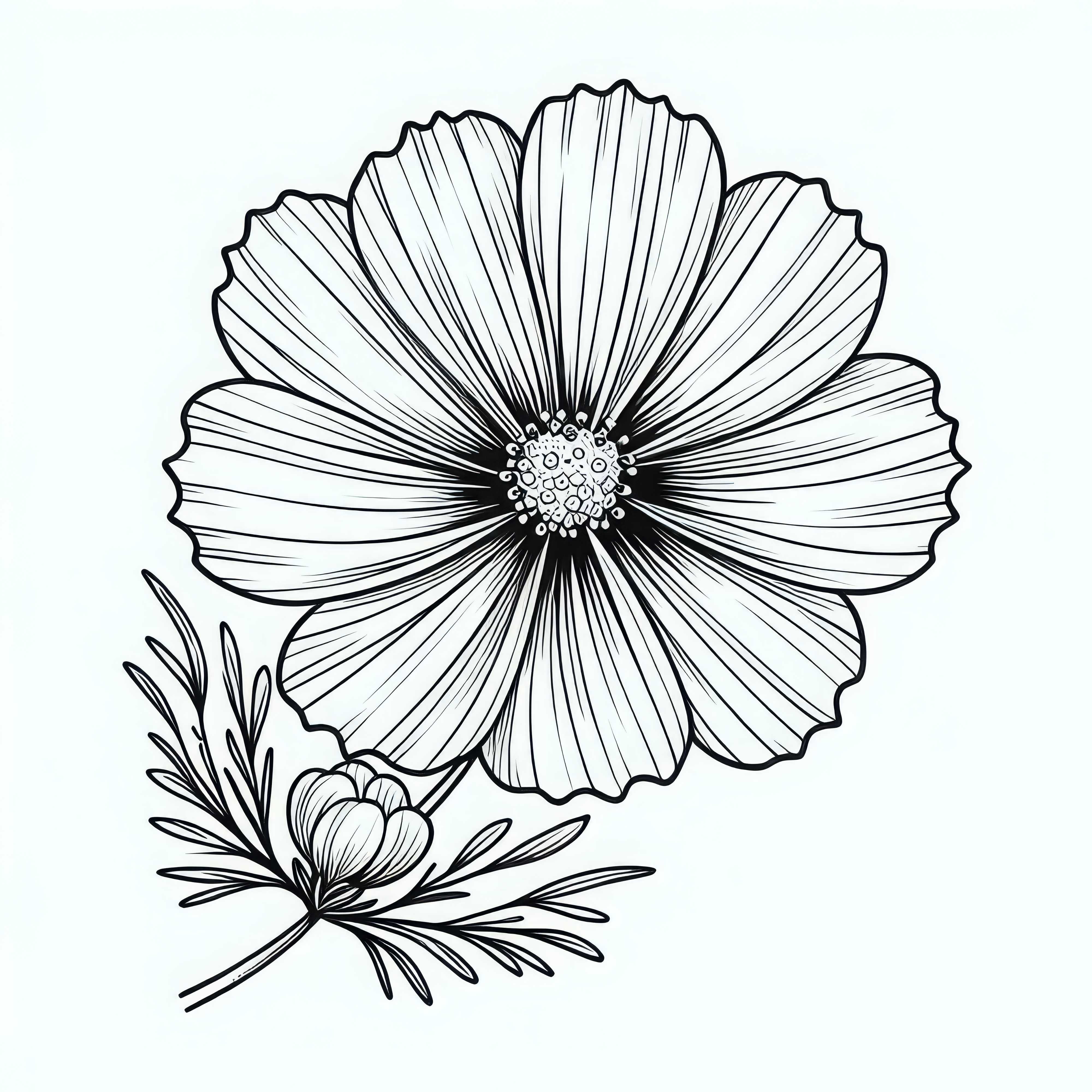 Няколко цветя и кошници за бижута растат на поляната – Безплатен шаблон за оцветяване