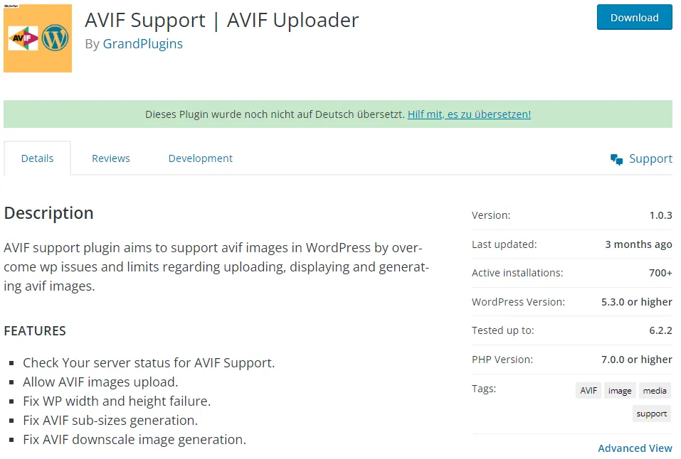 Zde je odkaz na plugin AVIF-Support – momentálně má pouze 1 956 stažení a méně než 800 instalací – je vidět, že AVIF je pro uživatele WordPressu stále naprosto neznámý.