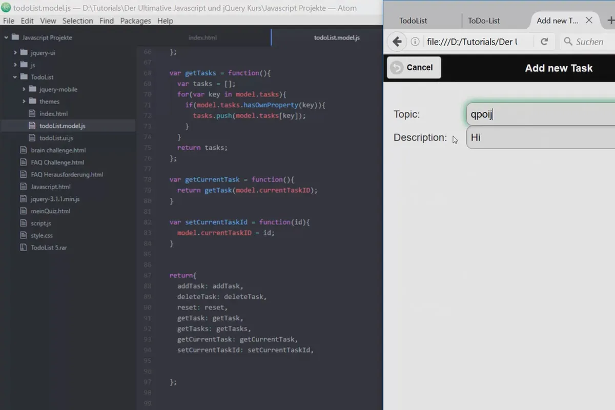 Tvá aplikace, tvá hra, tvá webová stránka! Možné s JavaScriptem a jQuery - možné s tímto videovým tutoriálem! Během více než 10,5 hodin se naučíš, jak pracovat s proměnnými, smyčkami, funkcemi a operátory. K tomu: jQuery - knihovna, která se používá na více než 75 procentech nejúspěšnějších webových stránek na světě. Procvičuj přímo v tutoriálu pomocí praktických příkladů.