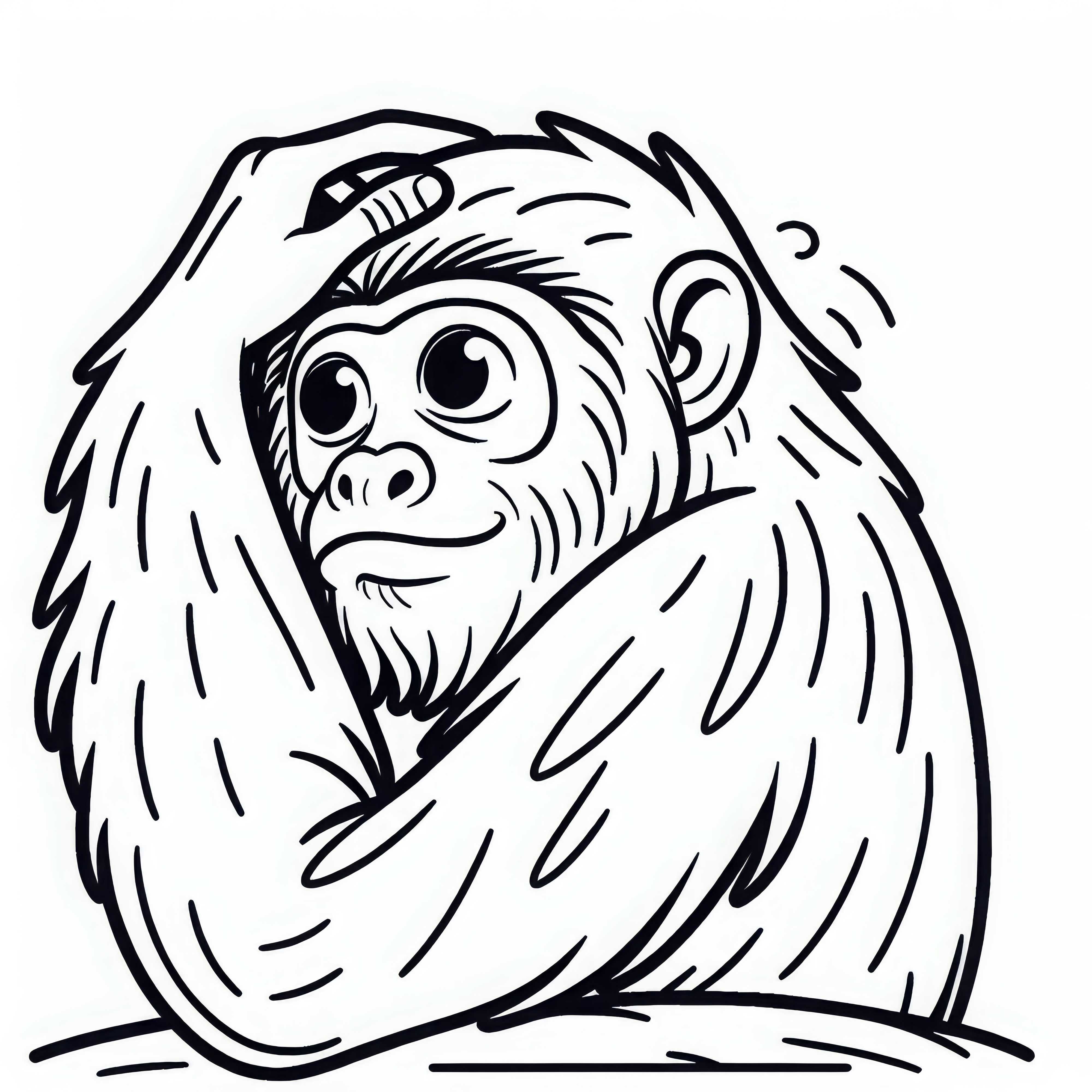 Řvoucí opice zvědavě sleduje hada na zemi – obrázek k vybarvení ke stažení