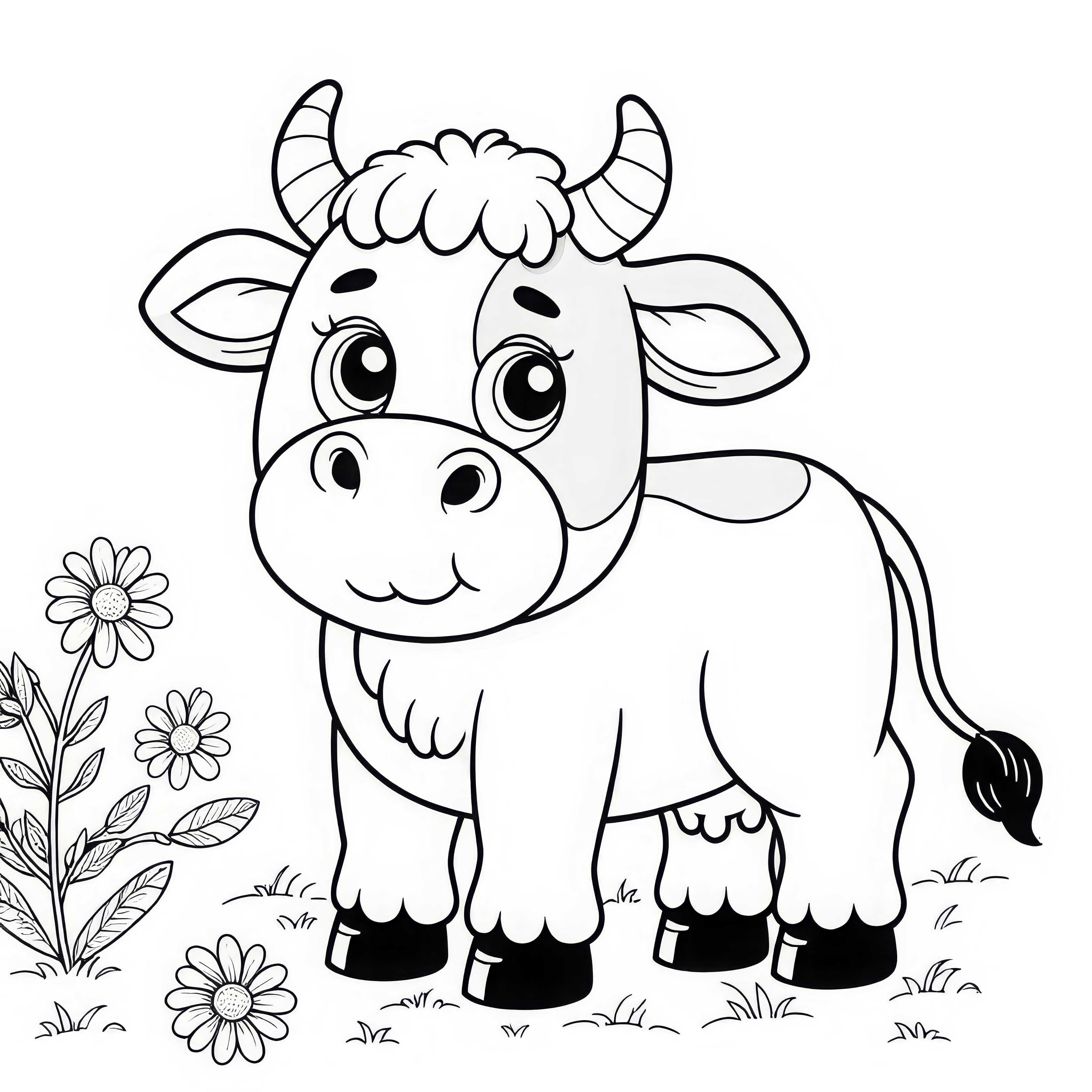 Býk se škrábe kopýtkem na hlavě – jednoduchá zdarma omalovánka