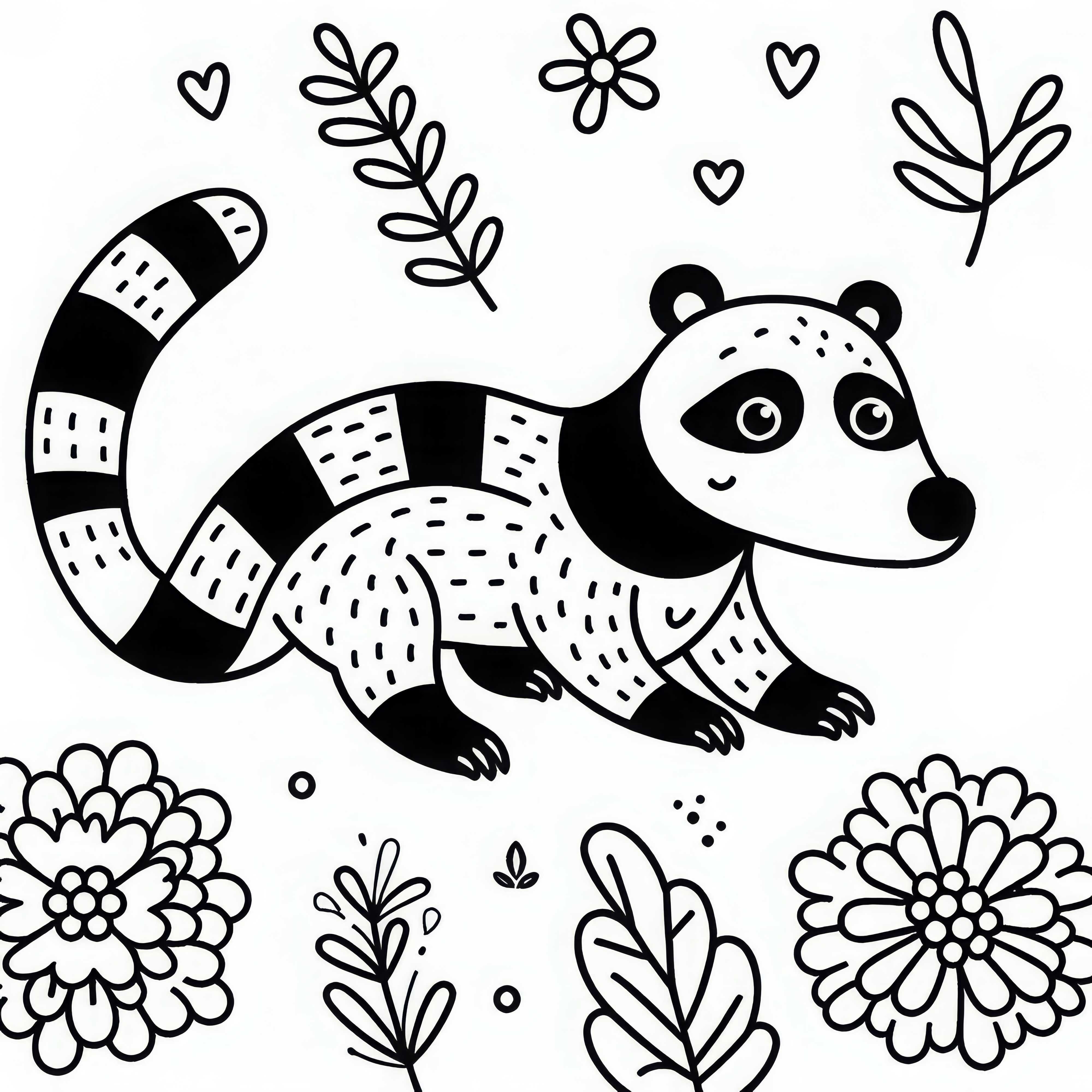 Nasenáč se odpočívá na větvi – Vymalovánka zdarma