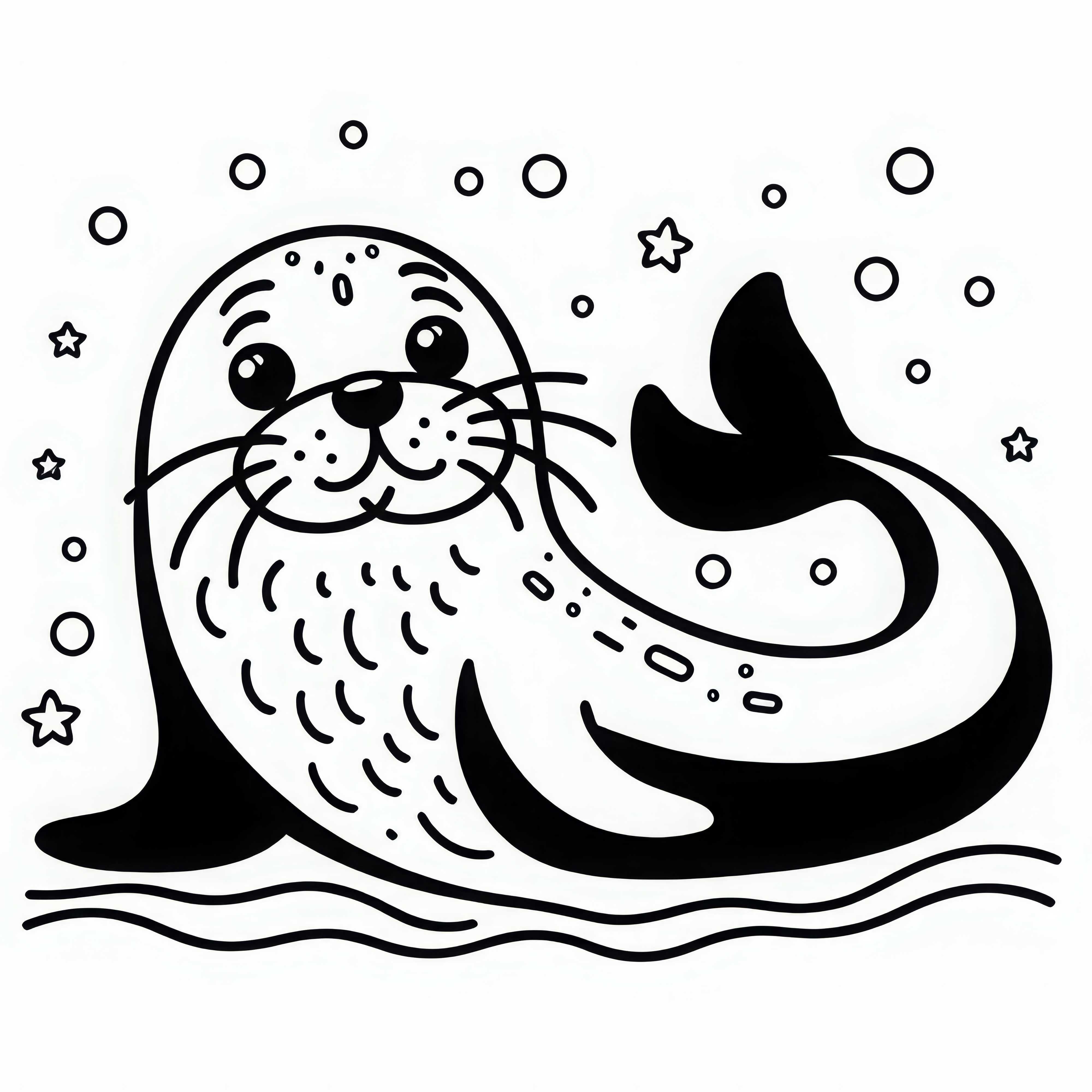 Severní tuleň si odpočinul na skalách – jednoduchá omalovánka zdarma