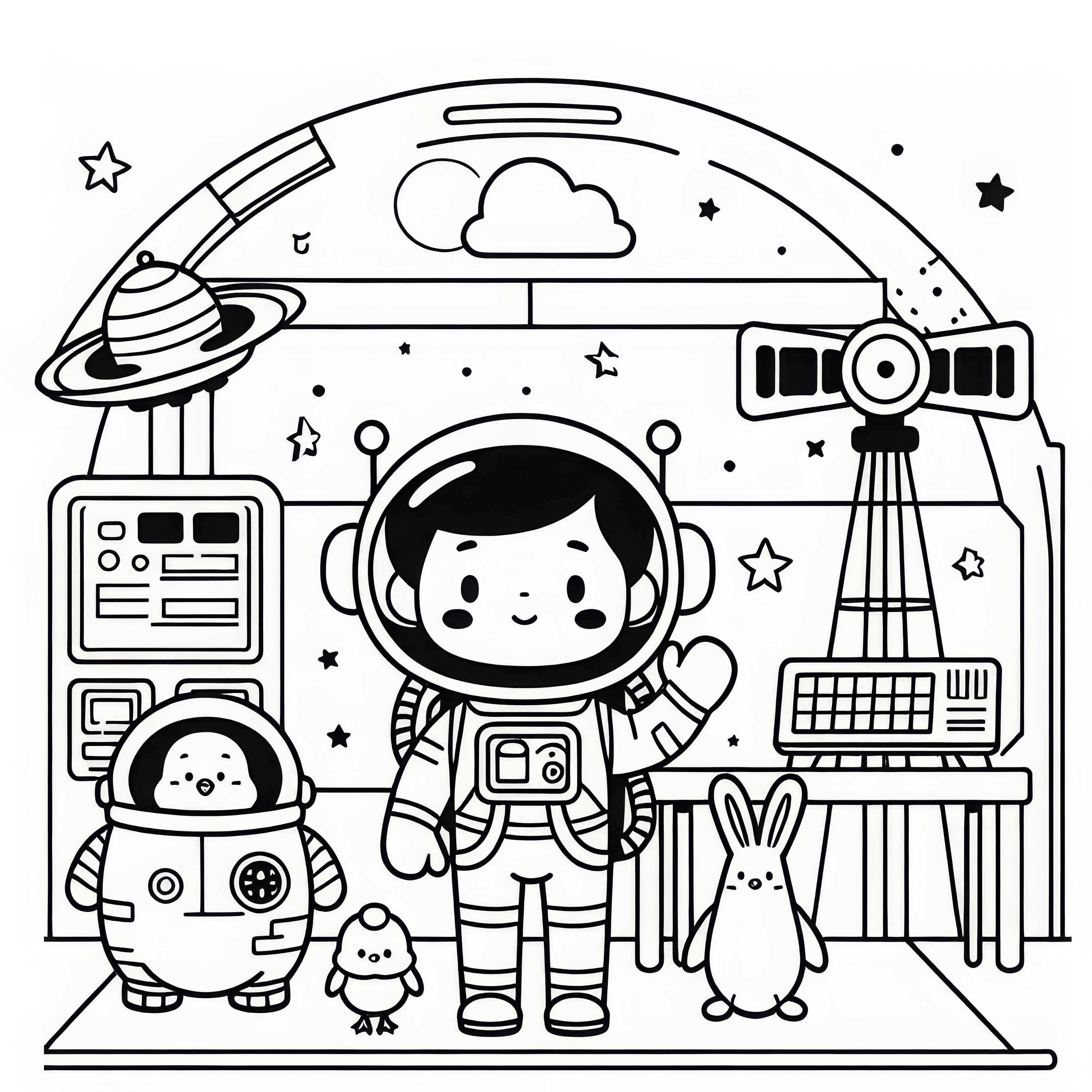 Astronaut ve stavu beztíže vznášející se – podrobný omalovánka zdarma