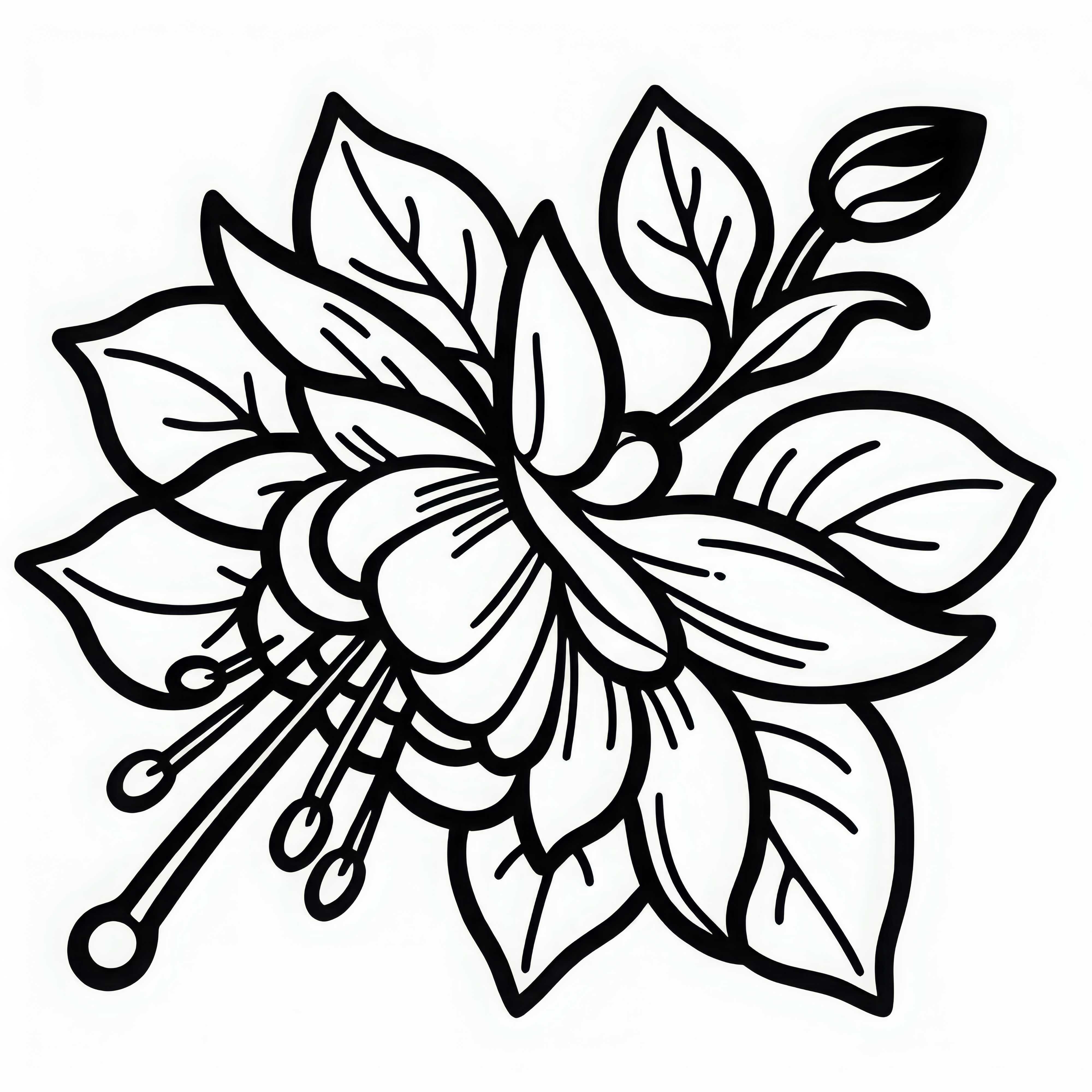 Květina fuchsie roste v kamenném květináči – zdarma omalovánka