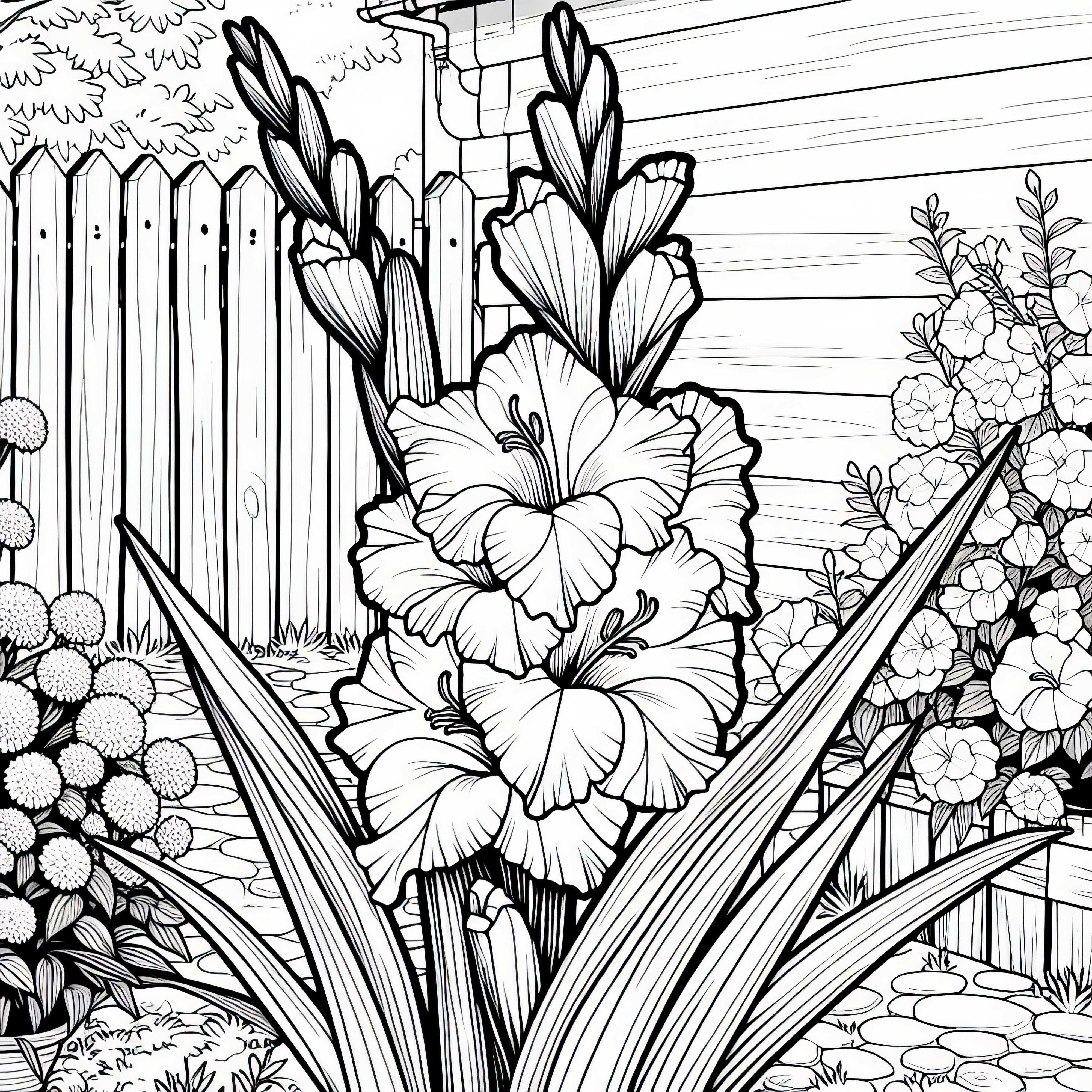 Návrh k vybarvení s květem gladioly ke stažení zdarma