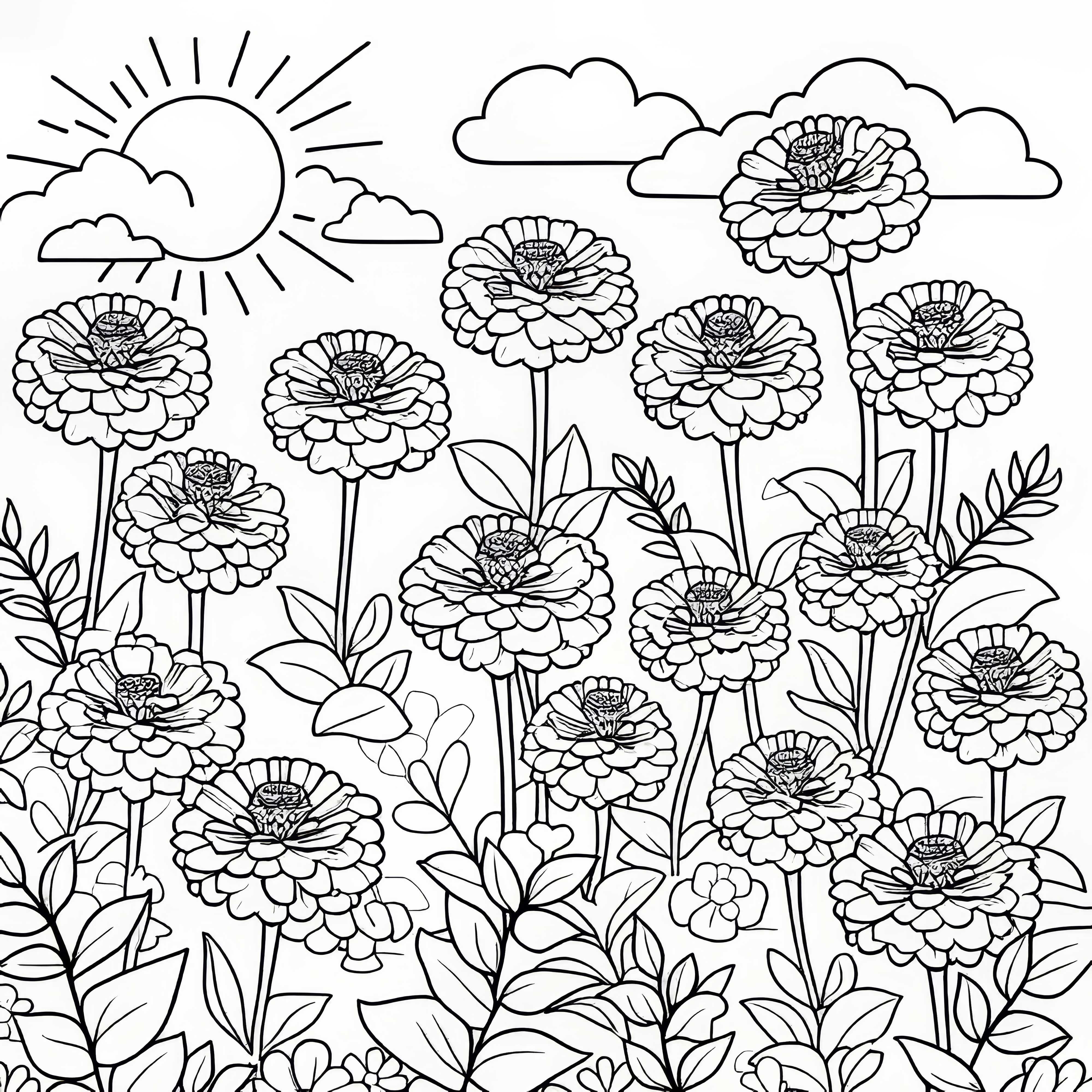 Tento malířský obrázek zobrazuje několik krásných cínie. Stáhni si obrázek teď a začni malovat!
