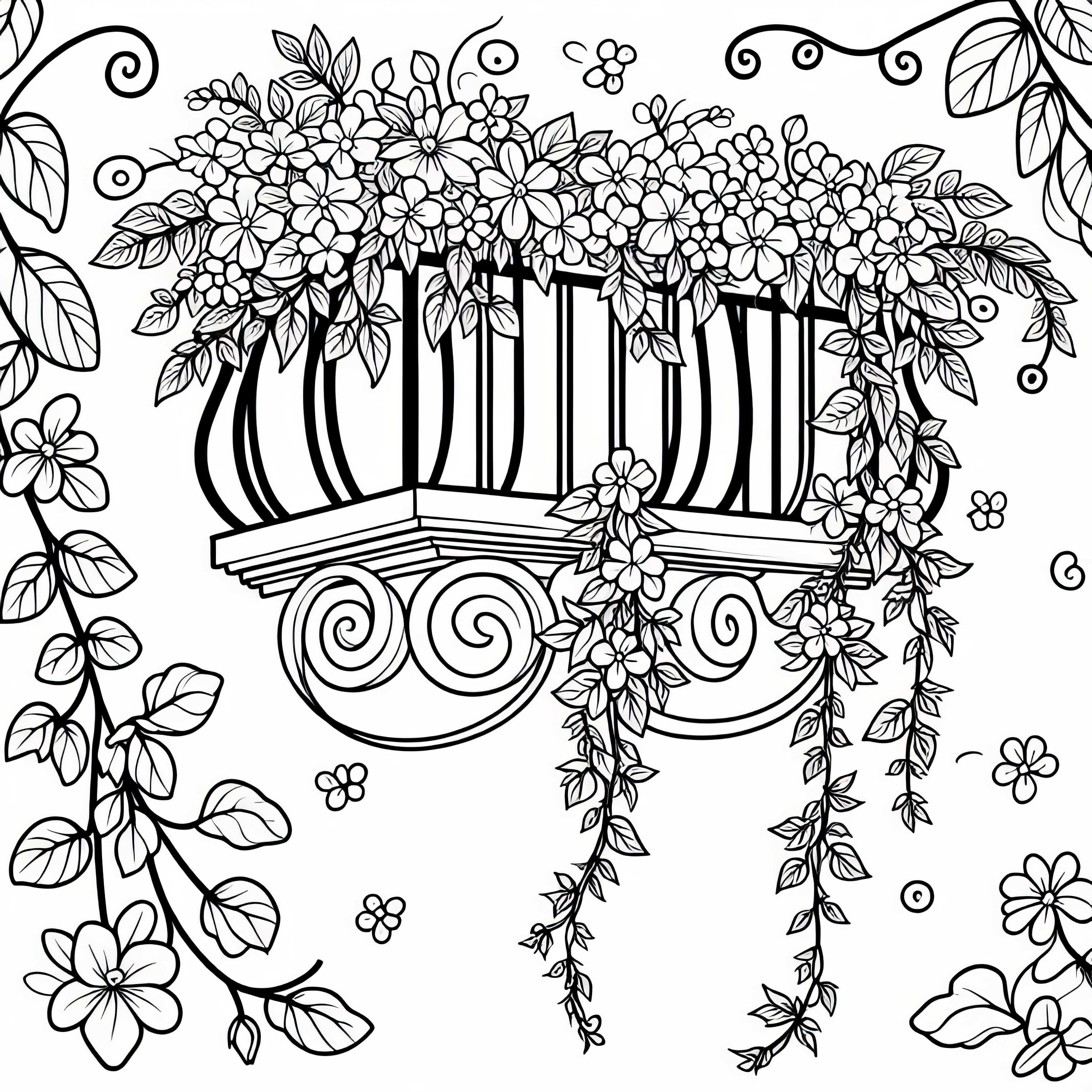 Křivolaká květinová vinice rámuje okno omalovánka zdarma