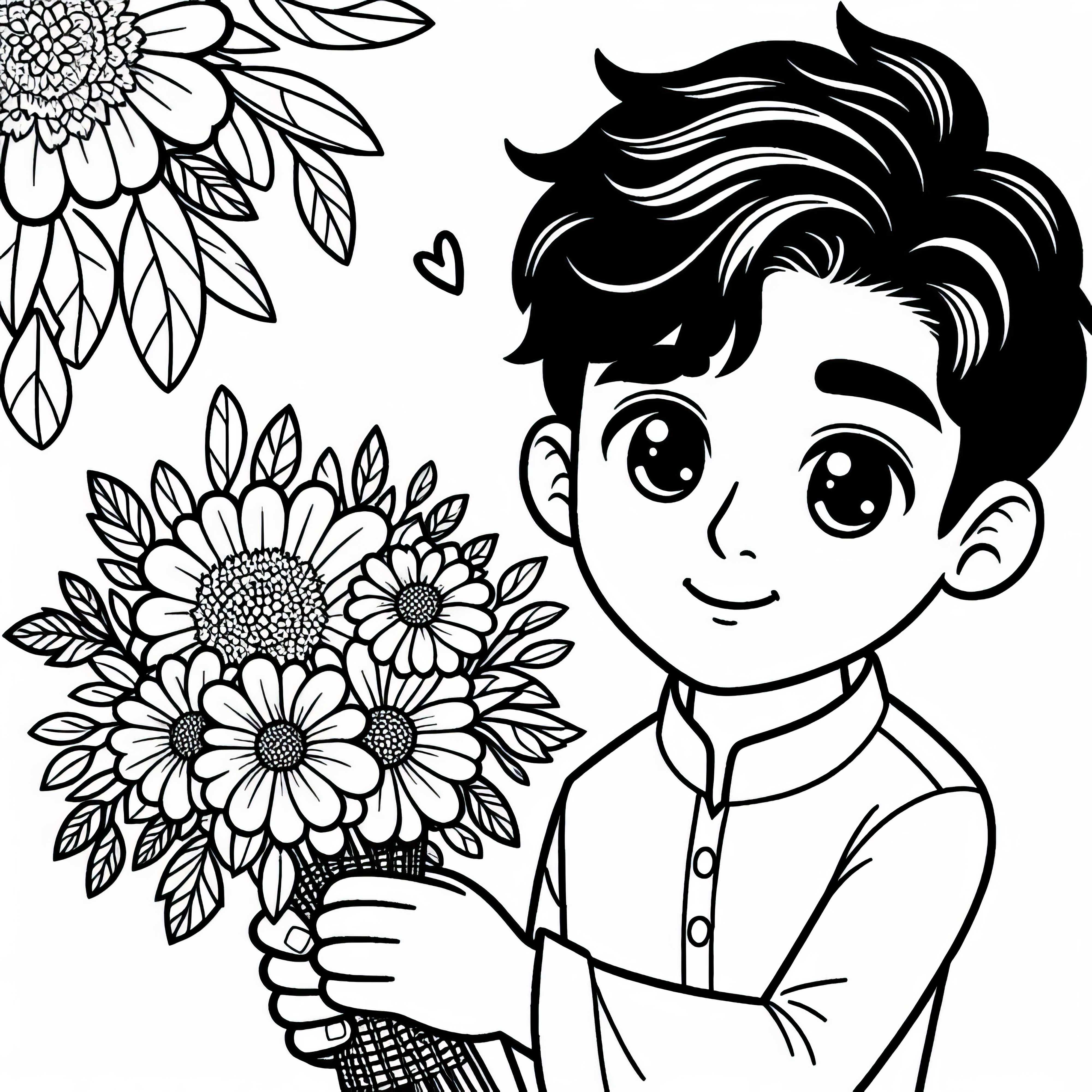 Romantická kytice na parapetu – Malba k vybarvení zdarma