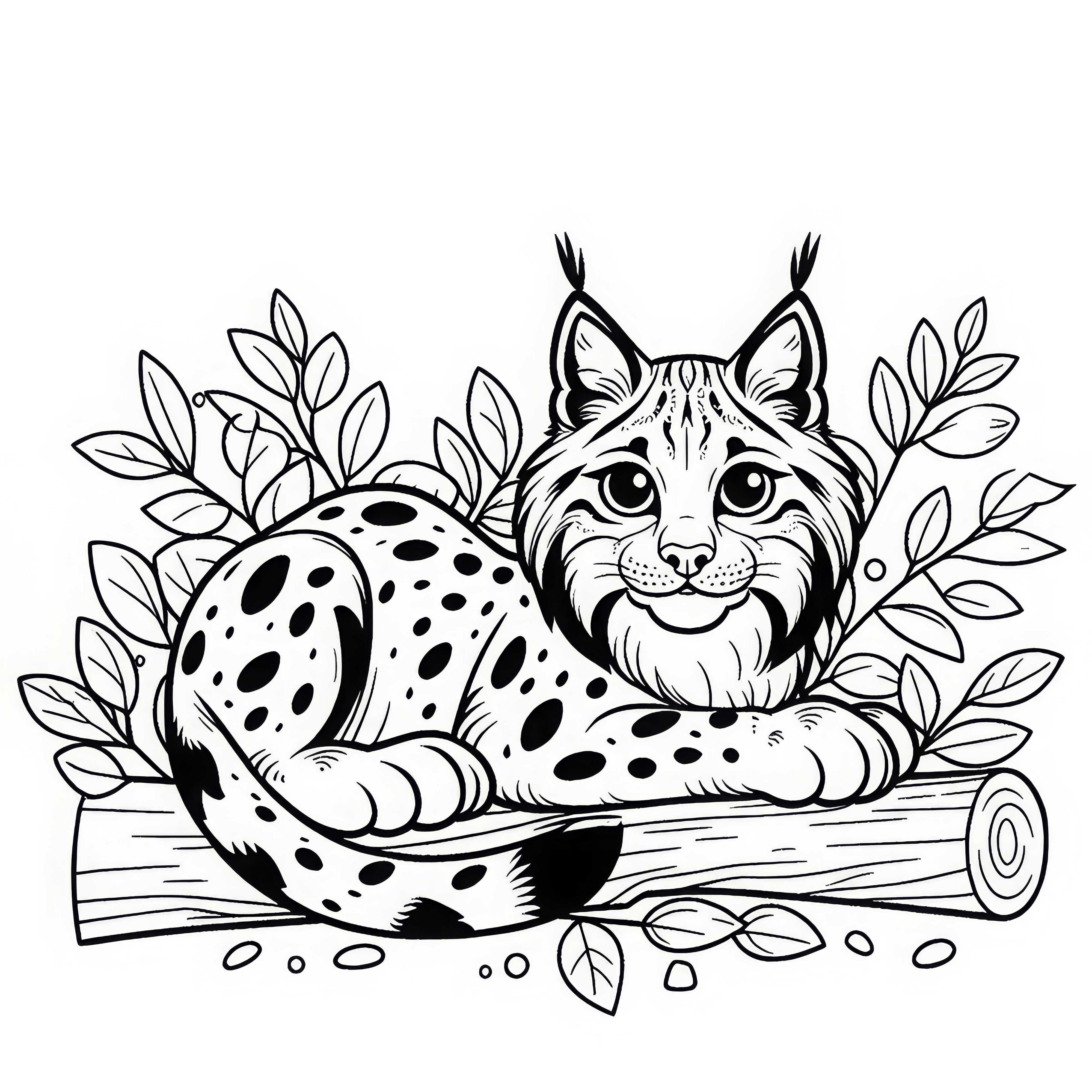 Rys se skrývá za keřem: Podrobná omalovánka (zdarma)