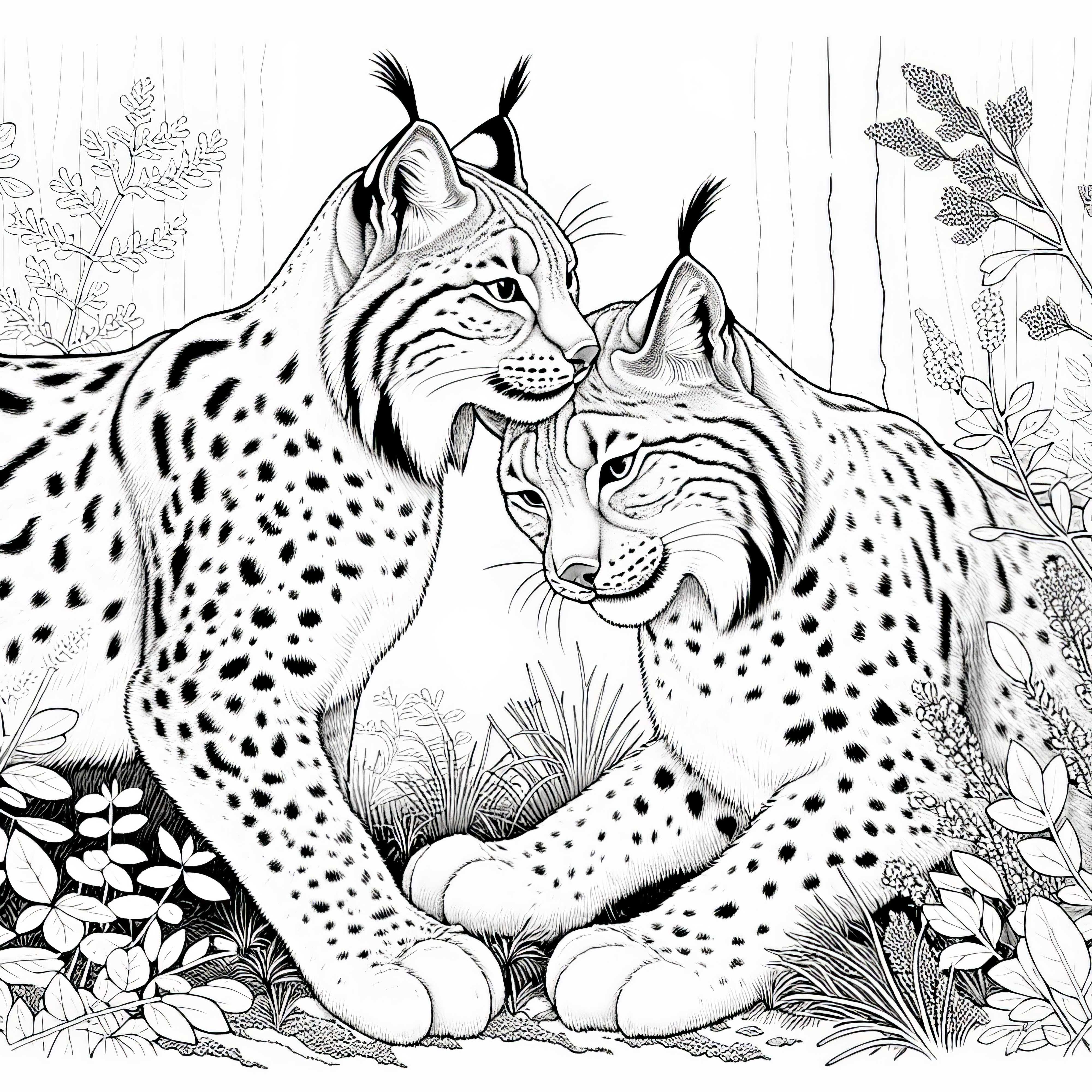Rys se skrývá za keřem: Podrobná omalovánka (zdarma)