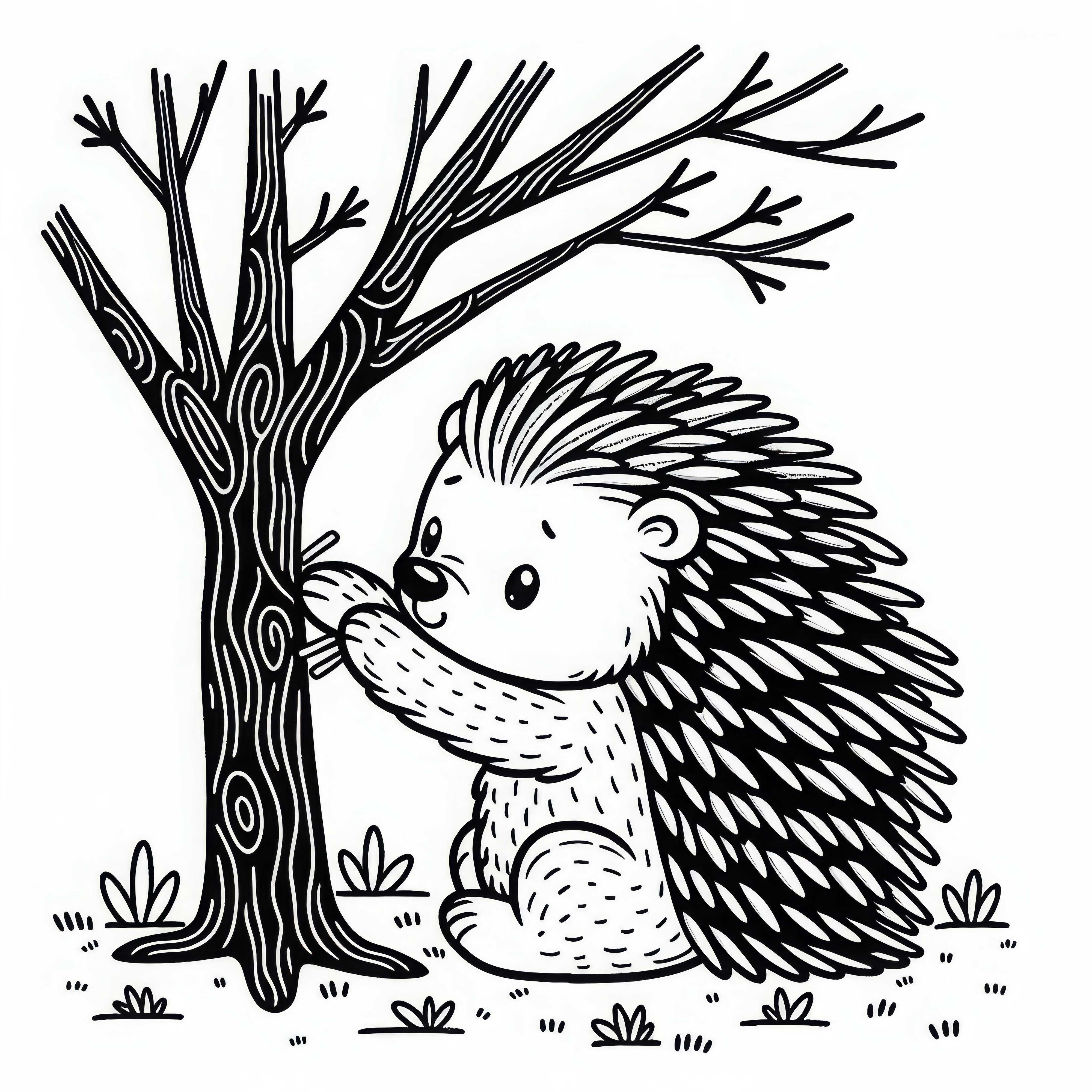 Mladé ježura opatrně zkoumá okolí – omalovánka zdarma