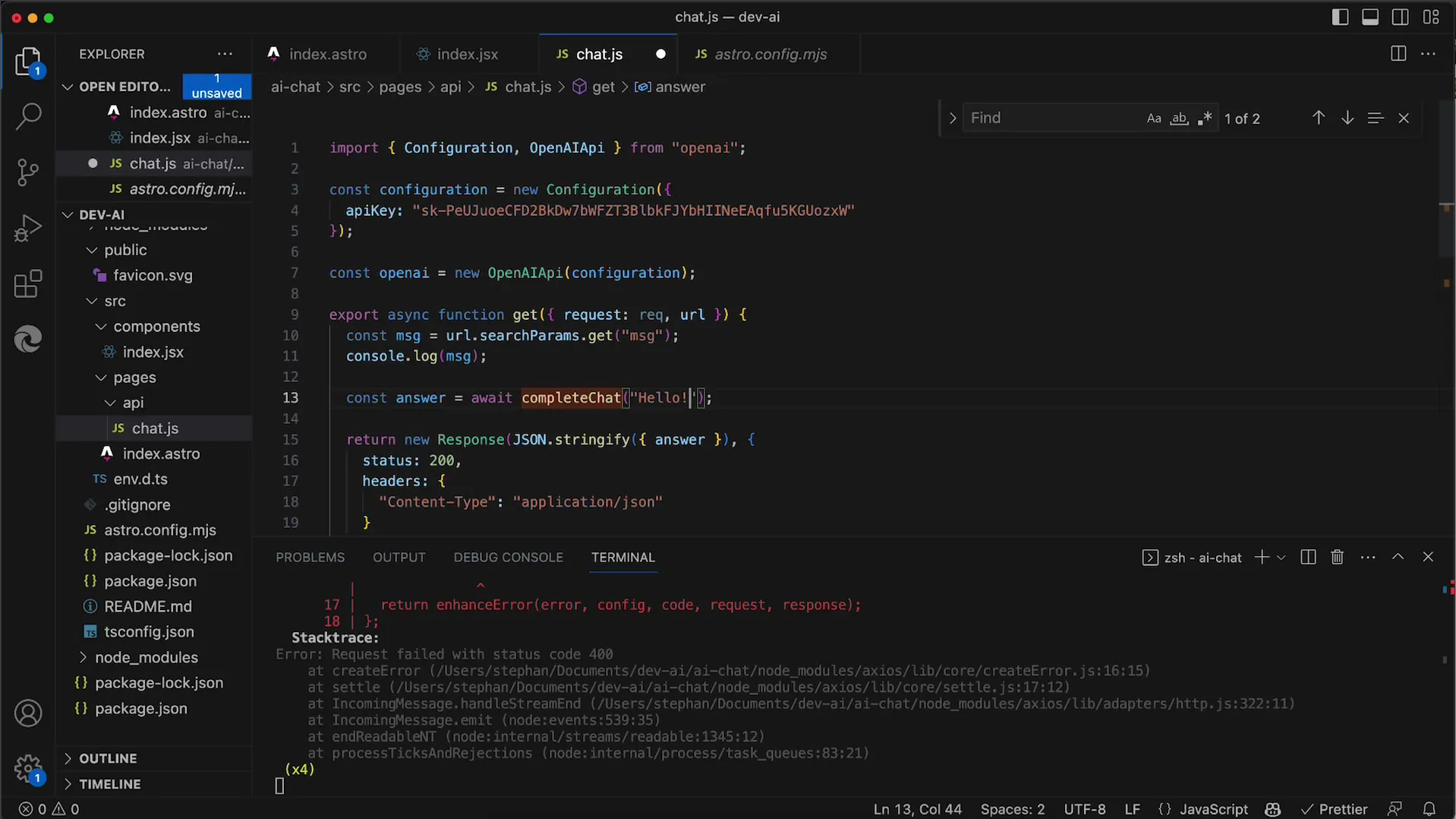 Nejprve se ujistěte, že jste OpenAI API správně nastavili. V našem předchozím videu jsme ukázali, jak API volat a použít pevný řetězec. Měli byste již mít základní konfiguraci vašeho projektu dokončenou.