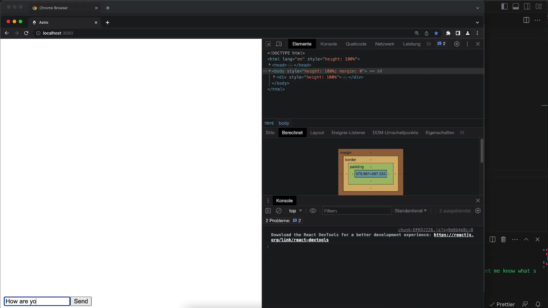 V této fázi změníme barvy uživatelských a AI zpráv. Nejprve zkontrolujeme, zda je index zprávy sudý nebo lichý, abychom jim mohli přiřadit odpovídající barvy. Uživatelská otázka bude zobrazena jako žlutá a odpověď od AI jako zelená.