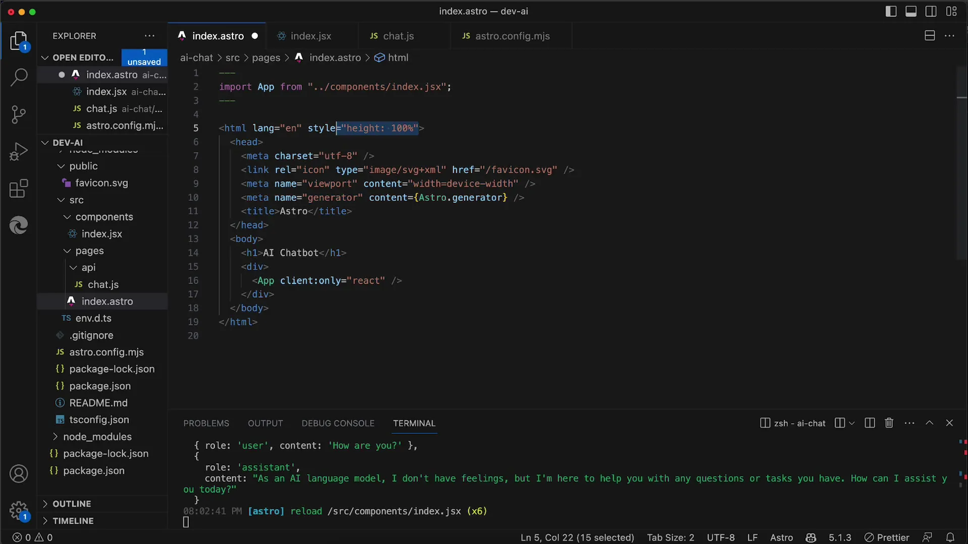 Ujistěte se, že používáte příkaz map k zobrazení každé zprávy v poli zpráv. Tím je zajištěno správné zobrazení každé uživatelské a API zprávy.