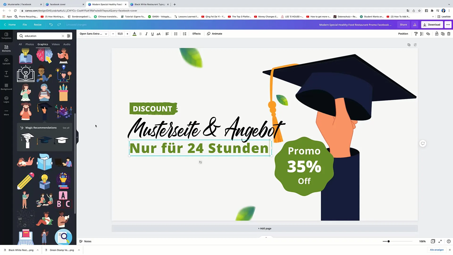 Chcete-li přidat další prvky, jděte do možností grafiky. Zde můžete vyhledávat určité symboly nebo obrázky, které se hodí k vašemu tématu, např. zadáním "Vzdělání".