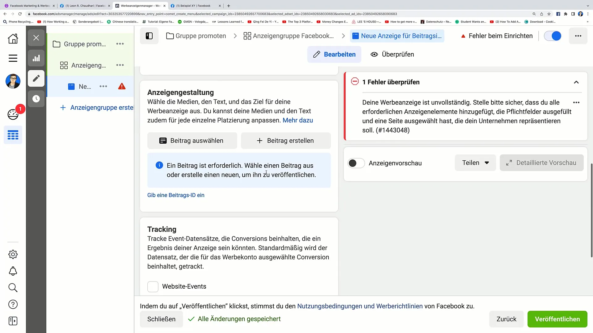 Po vytvoření vašeho příspěvku klikněte na „přestat zveřejňovat“ a poté na „uložit příspěvek“. Nyní se příspěvek zobrazí ve vašem manažeru reklam. Zkontrolujte všechny nastavení a klepněte na „zveřejnit“, abyste spustili svoji reklamu.