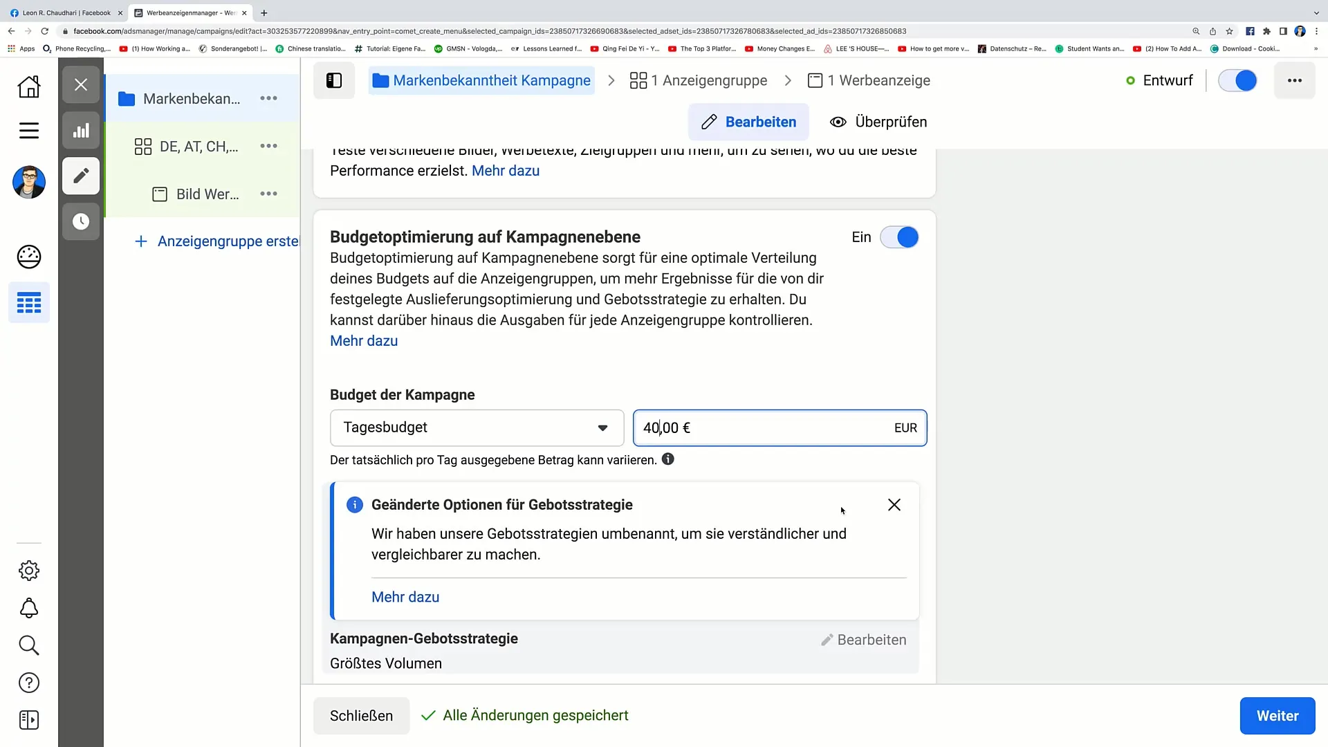 Zde musíš zadat některé základní informace. Urči název kampaně, například "Kampaň na zvýšení povědomí o značce". Poté uveď, kterou skupinu inzerátů chceš použít. To by mohla být například specifická cílová skupina, která má zájem o sport.