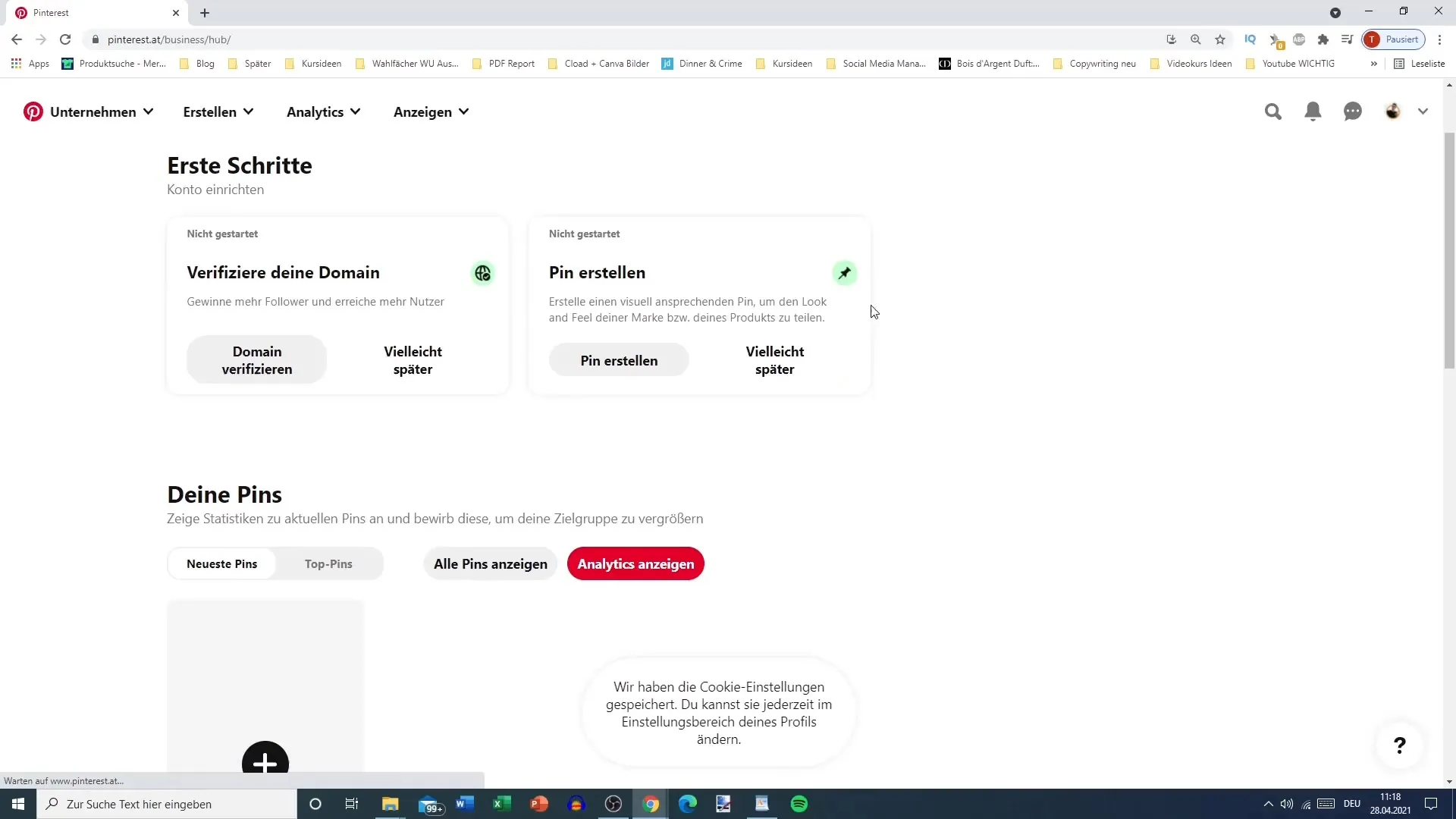 Po přihlášení se můžete zamyslet nad ověřením svého účtu. To je zvláště důležité, pokud chcete vytvořit profesionální značku. Navíc vám bude nabídnuto vytvoření vašeho prvního pinu, což však můžete provést i později.