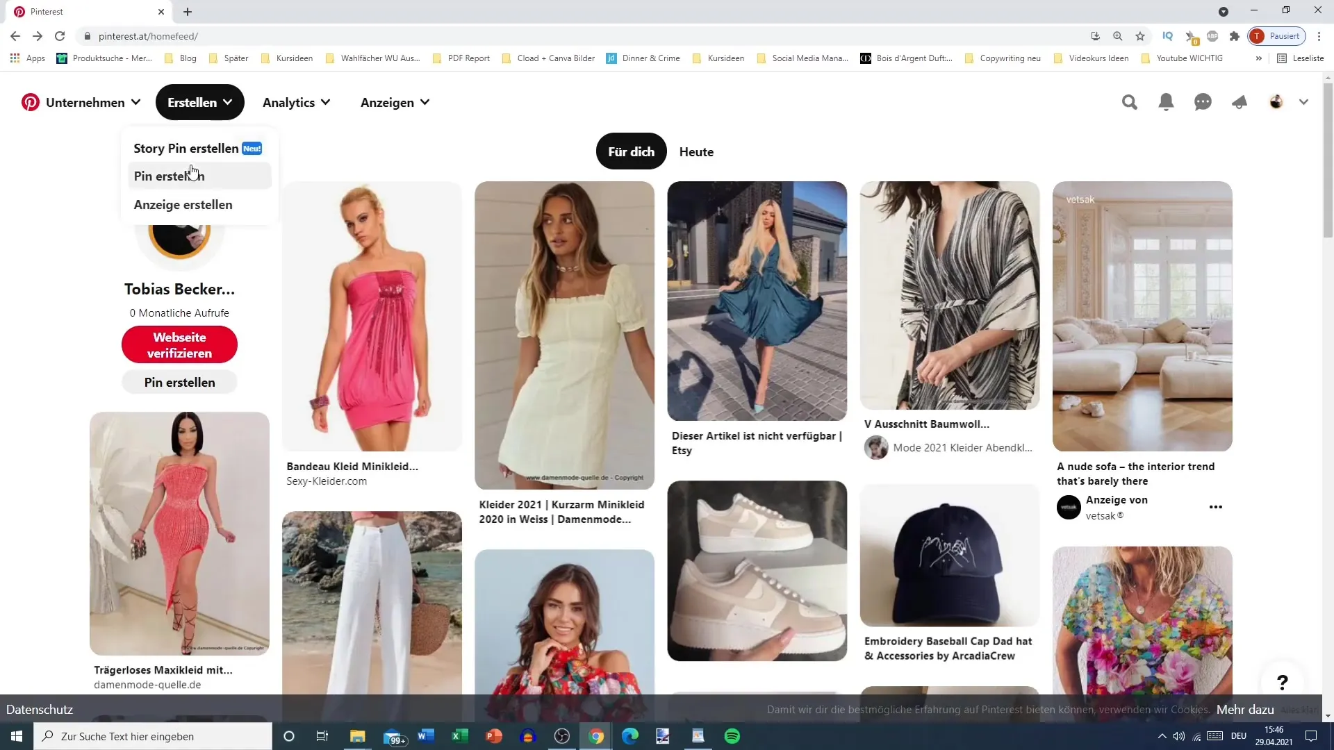 Abys mohl vytvořit nový pin, jděte na možnost "Vytvořit" ve svém účtu na Pinterestu a vyberte "Vytvořit pin". Zde máte možnost vybrat obraz nebo příspěvek, který chcete připnout.