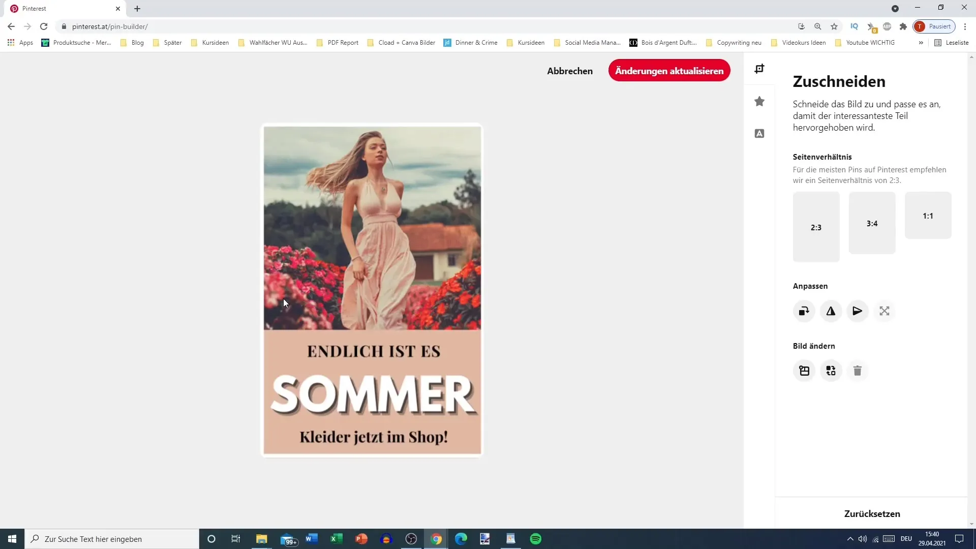 Máš možnost nastavit formát svého pinu. Standardní formát je 2:3, ale můžete jej změnit na 3:4 nebo na čtvercový formát. To přispívá k estetice a efektivitě tvého pinu.