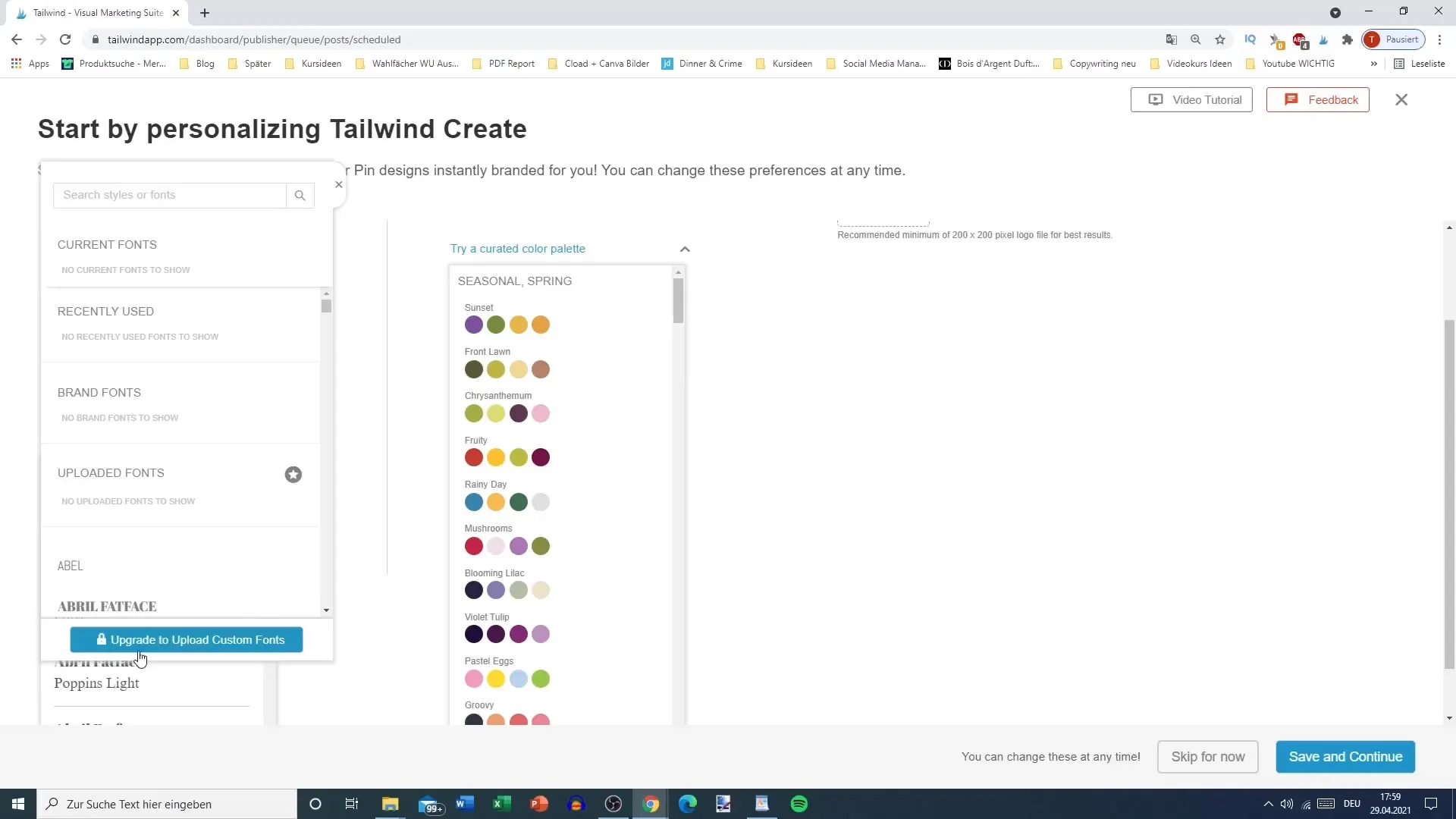 Nyní máš možnost vybrat písmo pro svůj design. Můžeš použít buď jedno z existujících písem, nebo nahrát vlastní. Je také důležité vybrat vhodnou barevnou paletu. Máš různé možnosti jako groovy nebo pastelové, které mohou tvému příspěvku dodat správný vzhled.