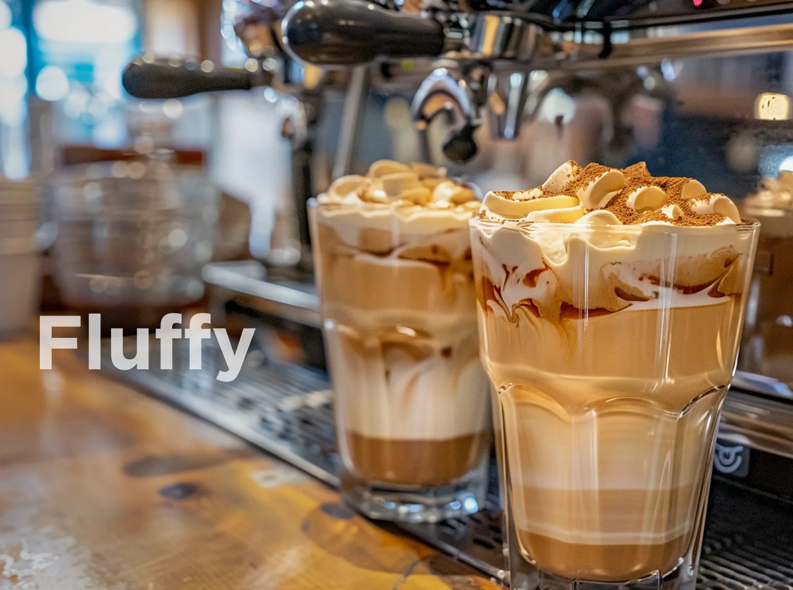 Fluffy er en kreativ kaffedrik, der har fået popularitet gennem sociale medier. Det opstod i de seneste år og erobrede hurtigt kaffeelelskeres hjerter takket være sit usædvanlige udseende og enkle tilberedning. Fluffy består af lige store mængder instantkaffe, sukker og varmt vand, som piskes med en håndmixer til en luftig, skummende tekstur. Denne luftige kaffeskum hældes over kold mælk eller pisket fløde og giver en lækker kaffedrik med en behagelig skumtop.